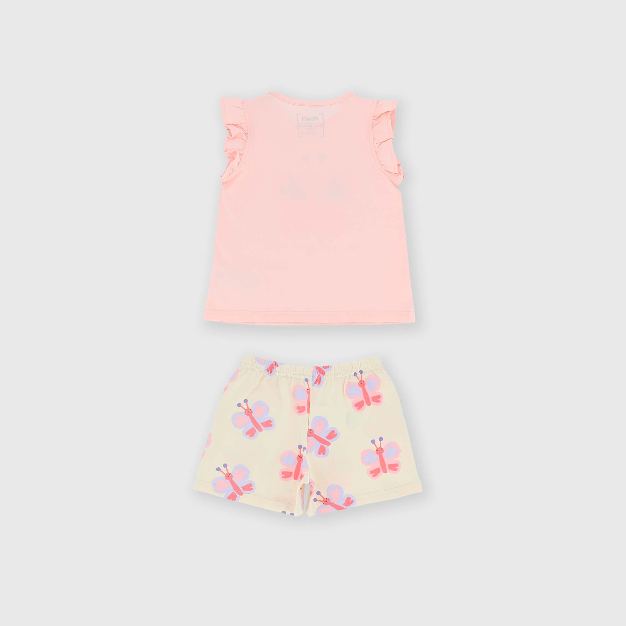 Complet pyjama en Jersey. Pull raz de cou à manches courtes, fermeture avec boutons pression sur épaule. Imprimé devant. Shorts avec taille élastique. Papillon imprimé all-over.