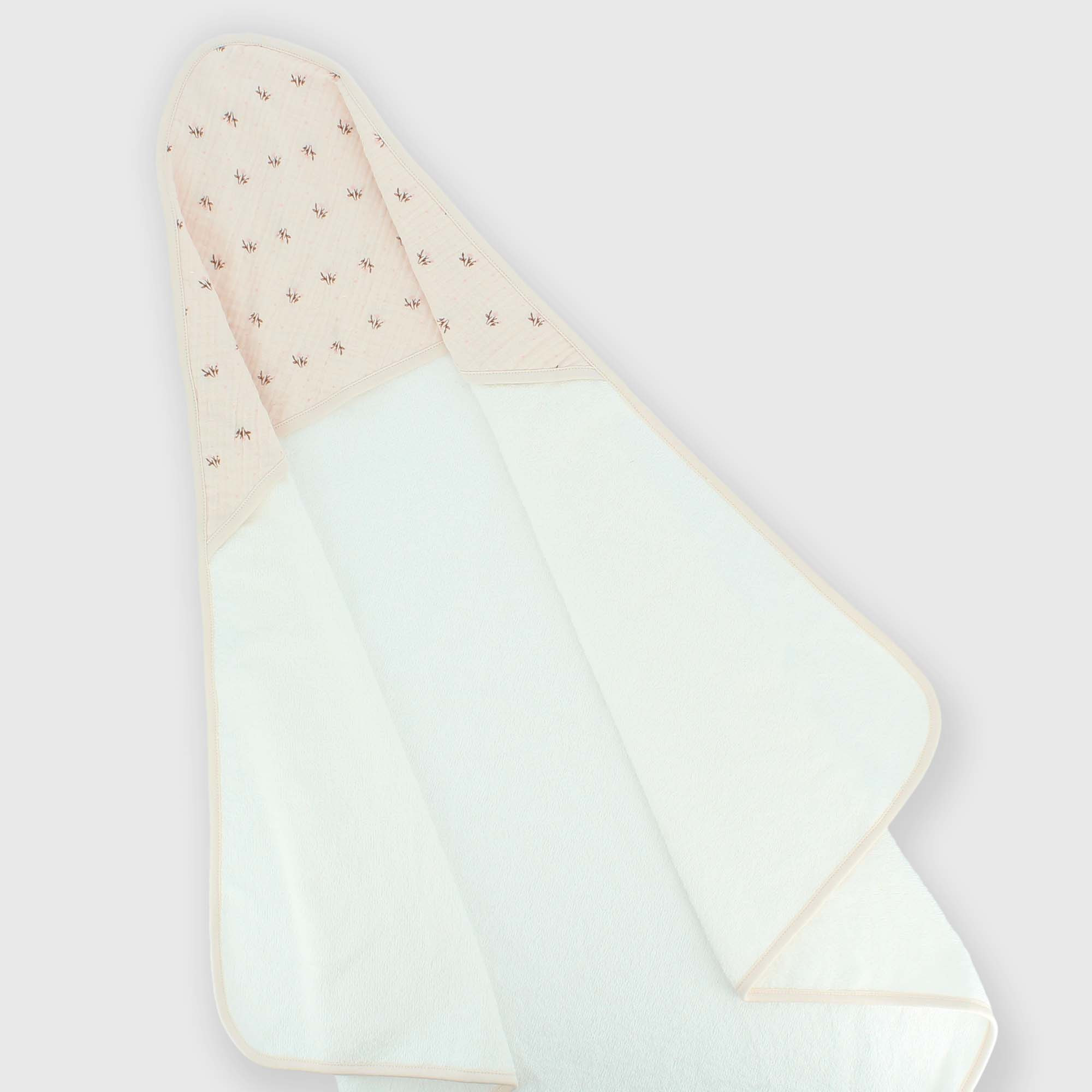 Triangle en éponge pour nouveau-né avec insert en gaze de coton imprimé.