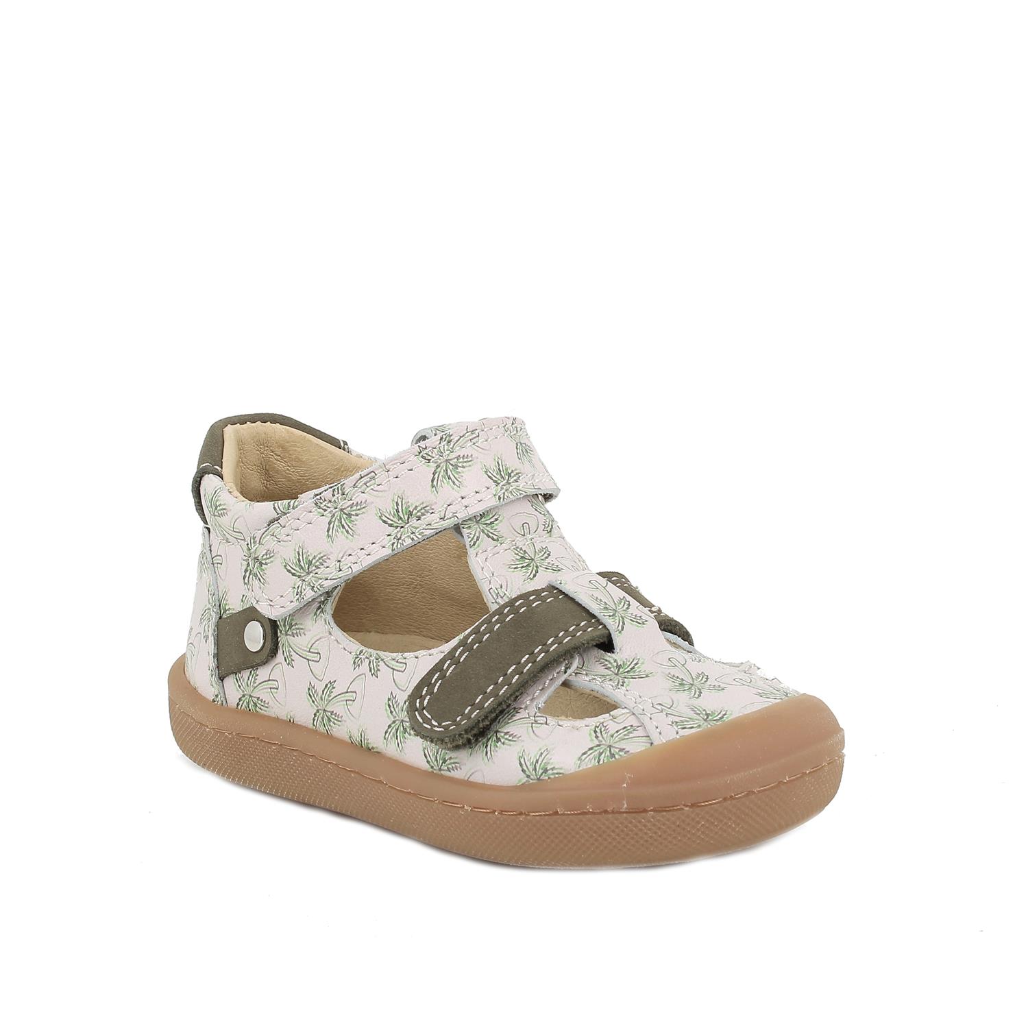 Sandale pour garçon beige et vert avec velcro