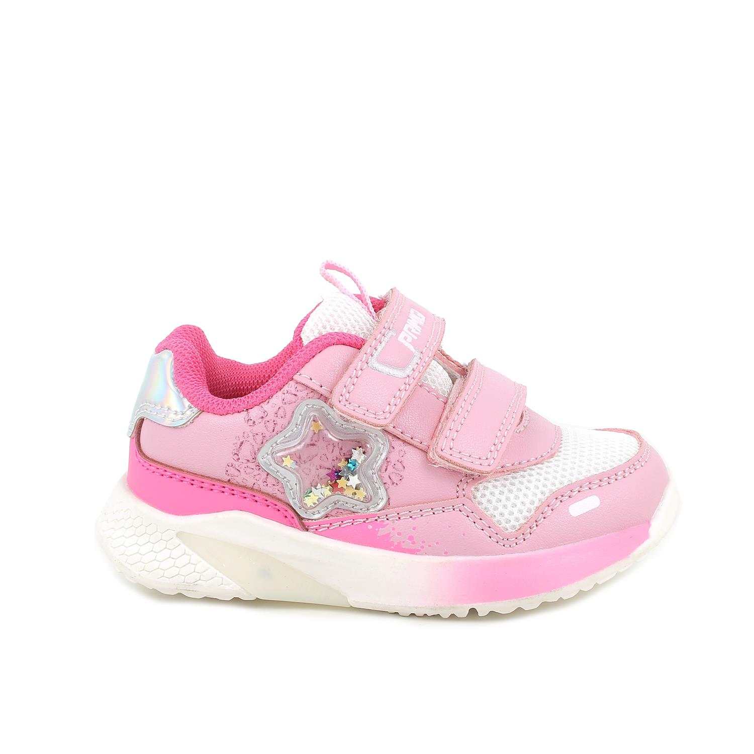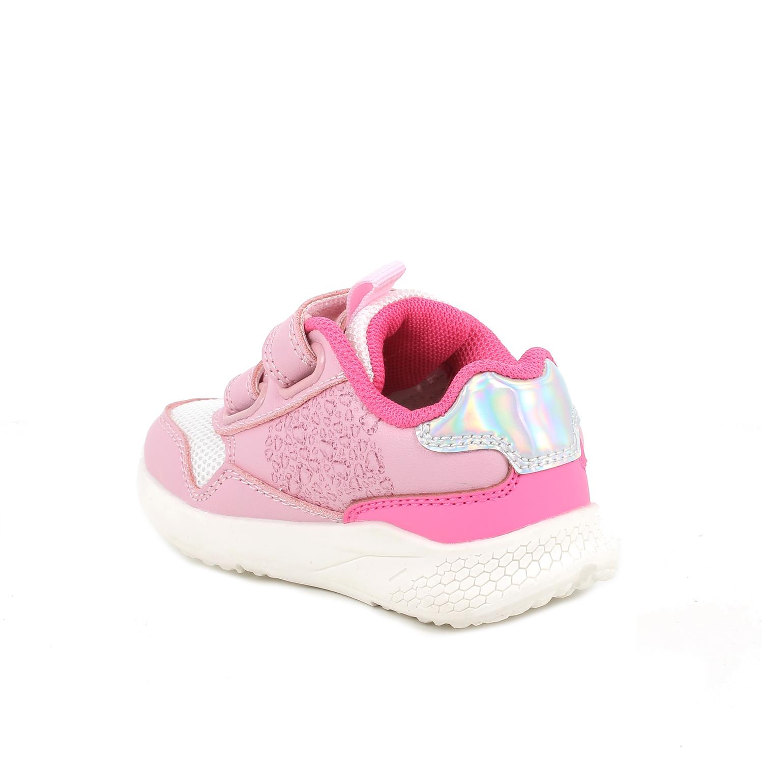 Ces baskets pour fille ont un look lumineux et ludique. La fermeture se compose de deux bandes velcro qui permettent un ajustement facile et un grip sûr. La semelle, très légère et légèrement surélevée, offre un bon amorti et une bonne traction, idéale pour une utilisation et pour le jeu quotidiens.