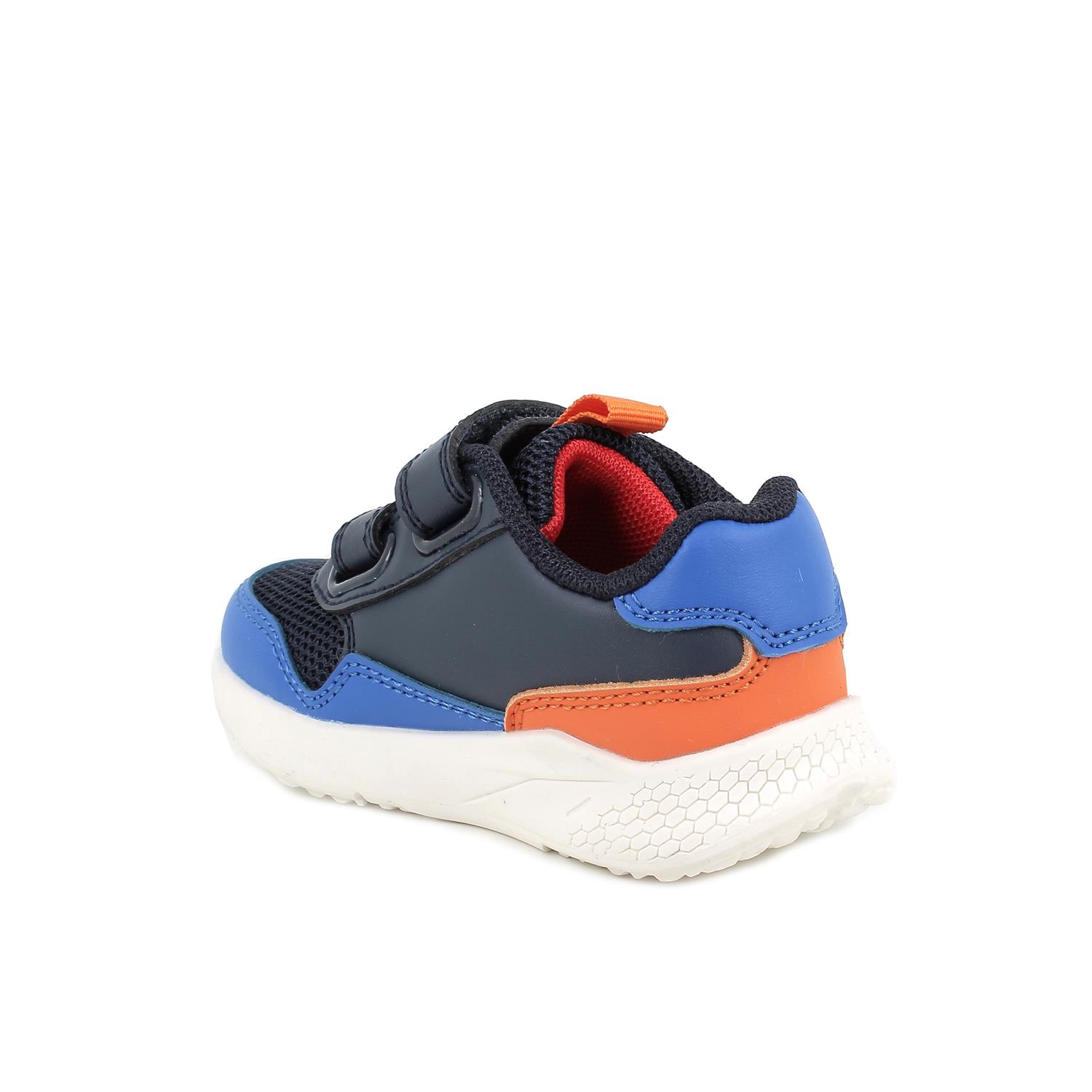 Ces baskets pour enfants présentent un design sportif et dynamique. La fermeture se compose de deux bandes velcro qui permettent un ajustement facile et un grip sûr. La semelle, très légère et légèrement surélevée, offre un bon amorti et une bonne traction, idéale pour une utilisation et le jeu quotidiens.