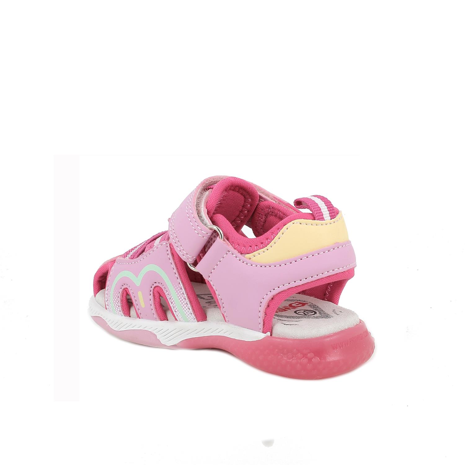 Sandales fermées premiers pas avec un aspect technique, parfaites pour les jeux d’été. Le pied peut respirer et les doigts sont protégés des possibles chocs. La pointe est arrondie pour lui donner l’espace nécessaire et trouver le bon équilibre. L’intérieur de ces chaussures est fait en tissu doux et offre un environnement confortable. La première en cuir est hygiénique et transpirante. Le design particulier de la semelle est conçu pour favoriser l’adhérence et la traction.