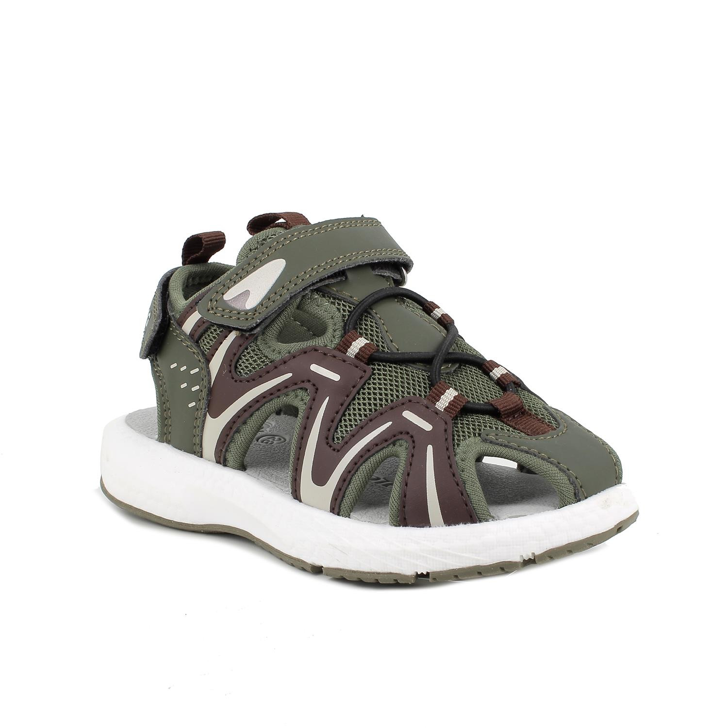 Sandales d’inspiration active, facilement réglables et sûres grâce aux velcros sur la cheville. Les matériaux ont été sélectionnés pour créer des chaussures légères et confortables à porter même durant des heures. La première en EVA est hygiénique et hydrofuge. La semelle ergonomique est légère et très flexible..
