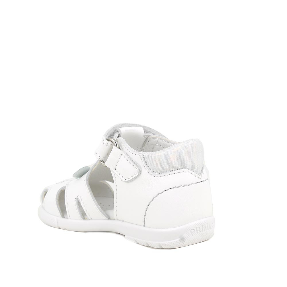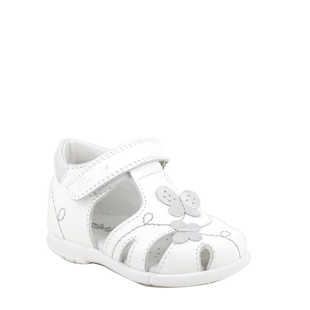 Des sandales premier pas pour fille avec la pointe fermée. La qualité des matériaux et de la construction assure un environnement sain et un soutien adéquat dans cette phase délicate de la croissance. Le design est raffiné et frais. La semelle intérieure en cuir sans chrome offre un soutien doux et la semelle arrondie laisse de la place au mouvement pour les orteils.