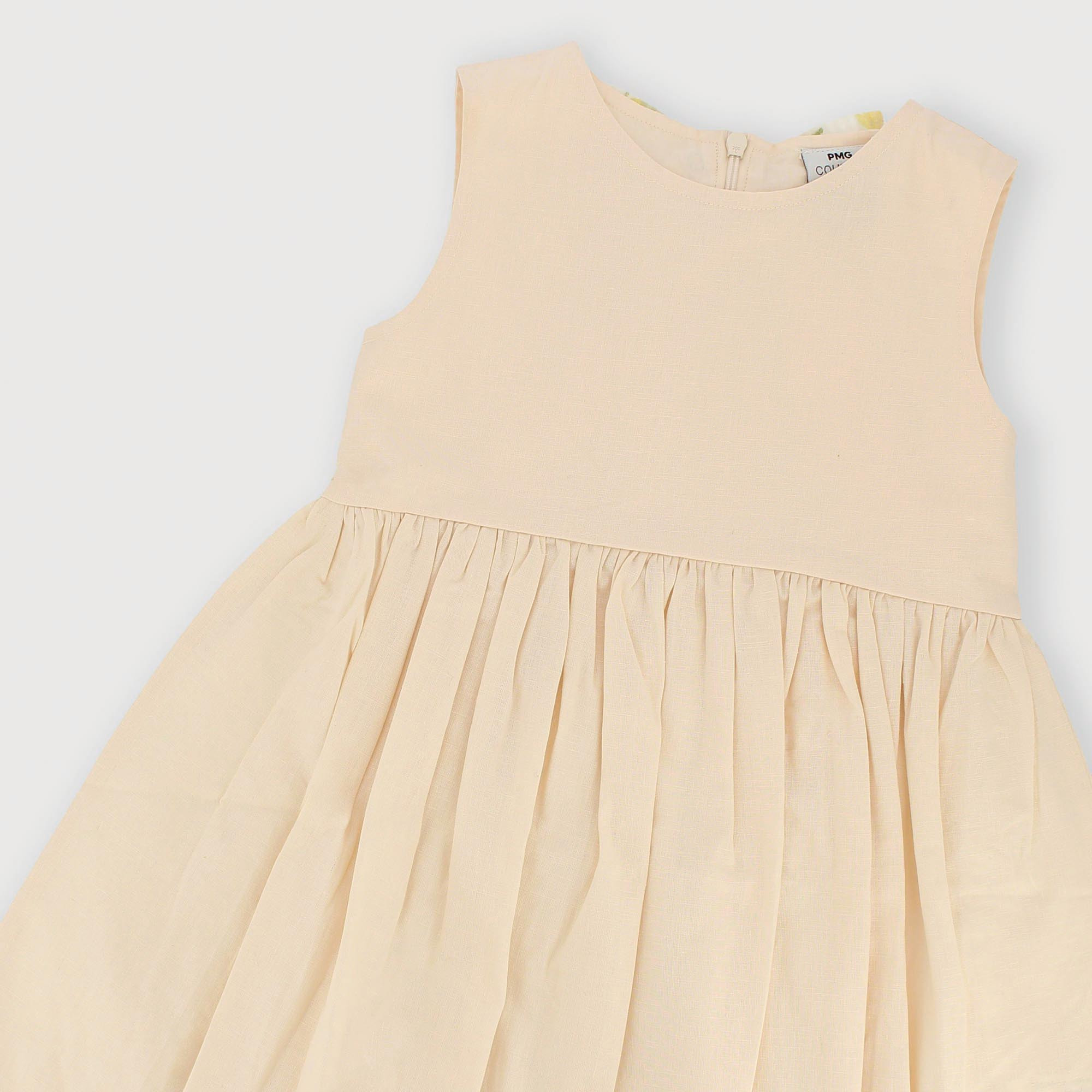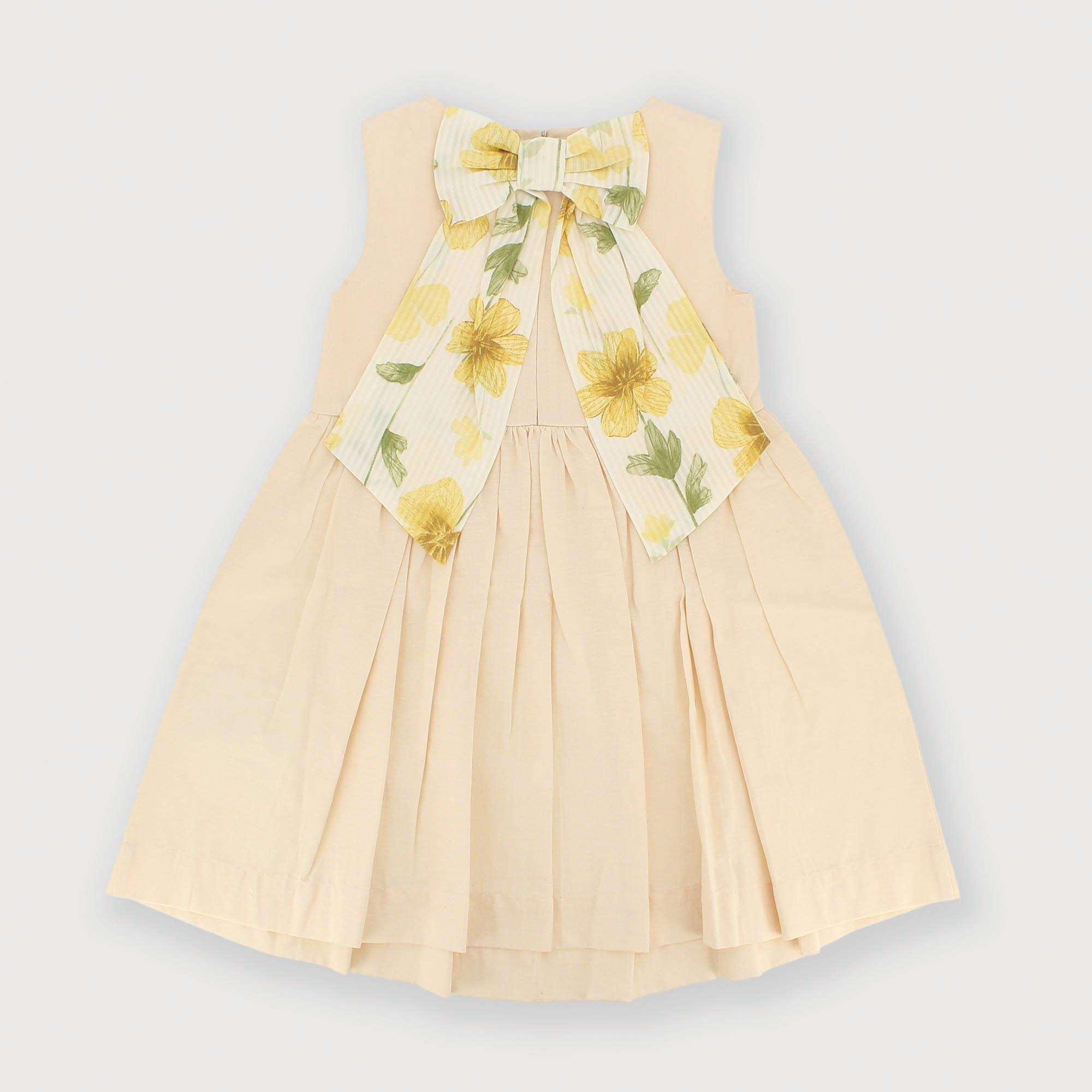 Robe en coton-lin, encolure ronde, emmanchures. Fermeture éclair invisible au dos. Coupe à la taille. Jupe ample. Nœud détachable.