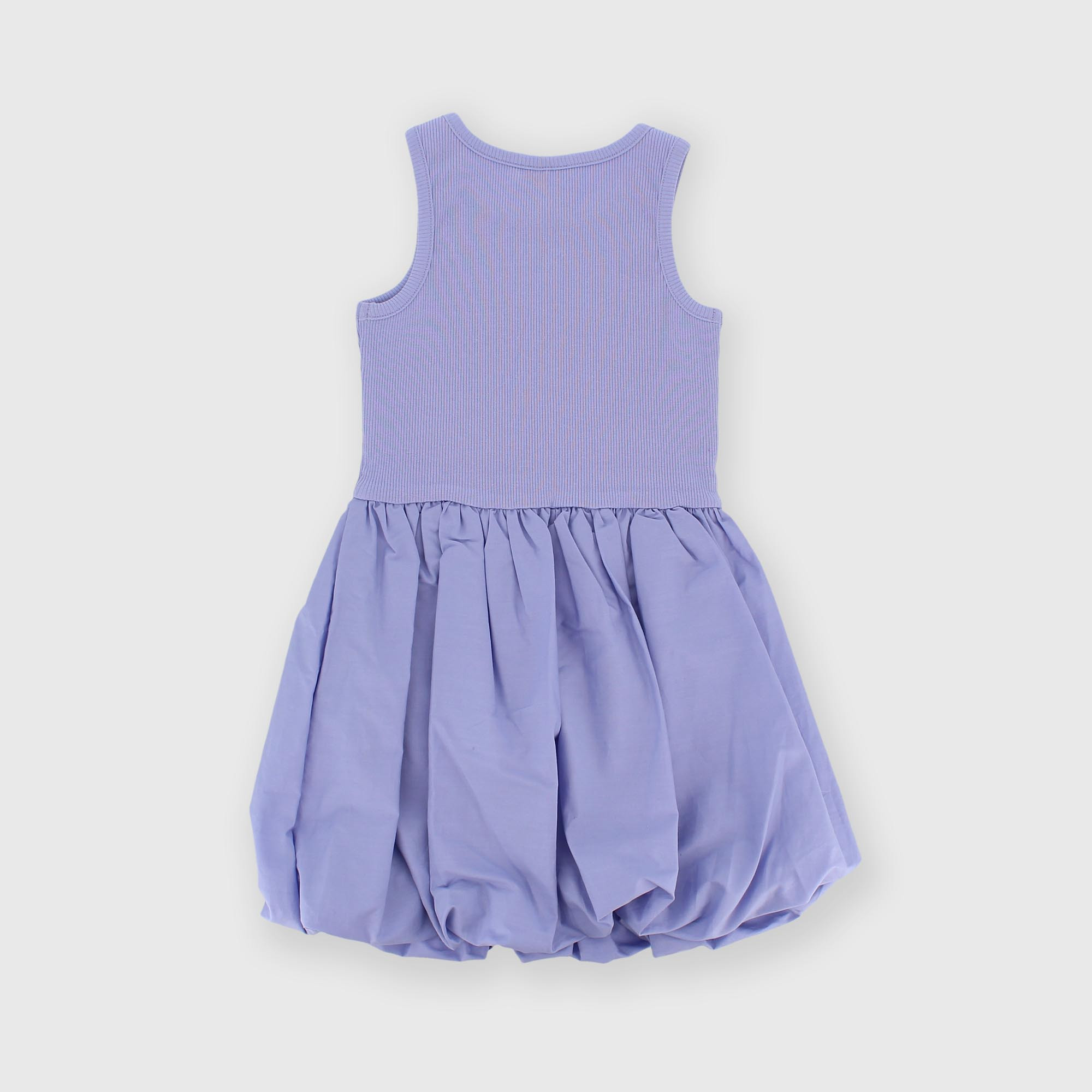 Robe côtelée, col rond, emmanchures. Jupe ballon en popeline.
