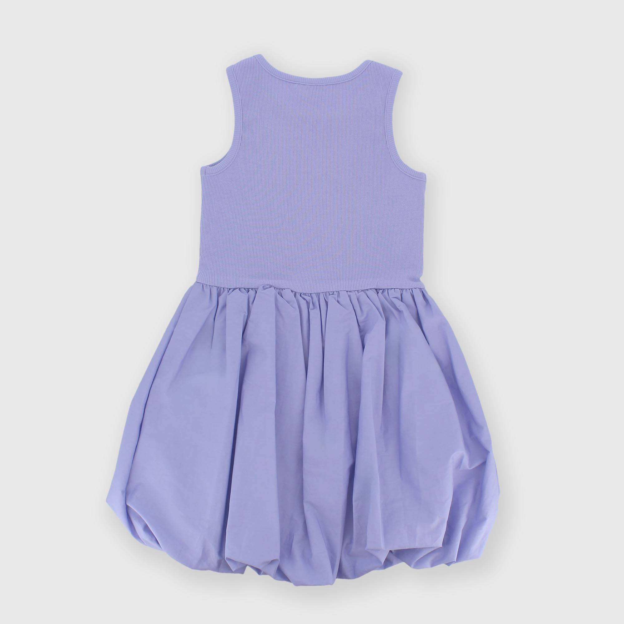 Robe côtelée, col rond, emmanchures. Jupe ballon en popeline.