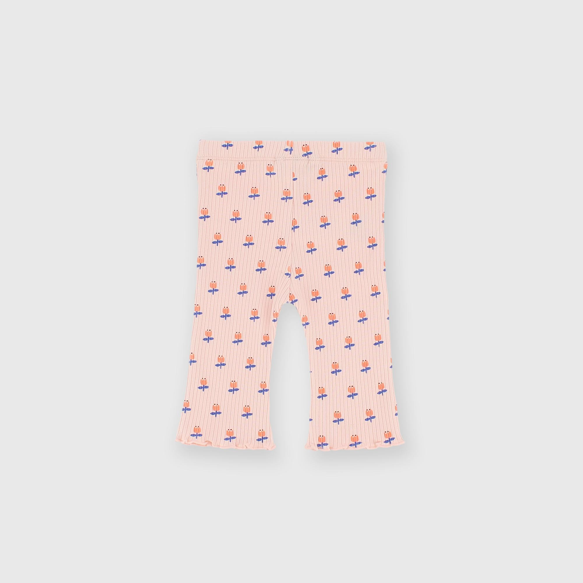Leggings en maille côtelée avec taille élastique. Imprimé fleuri sur toute la surface. Finitions avec point poupée.
