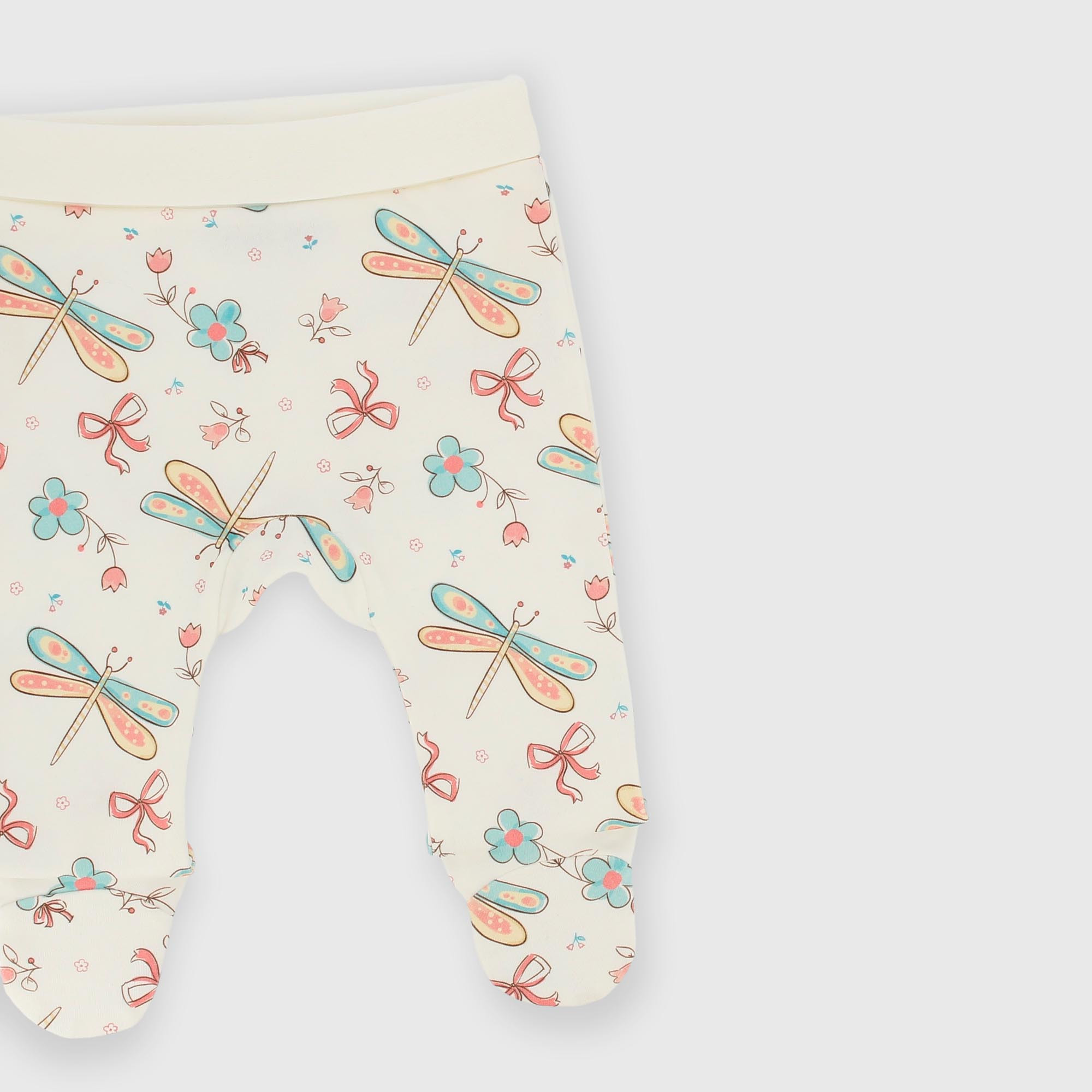 Short en interlock avec taille élastiquée, revers et pieds. Imprimé libellule partout.