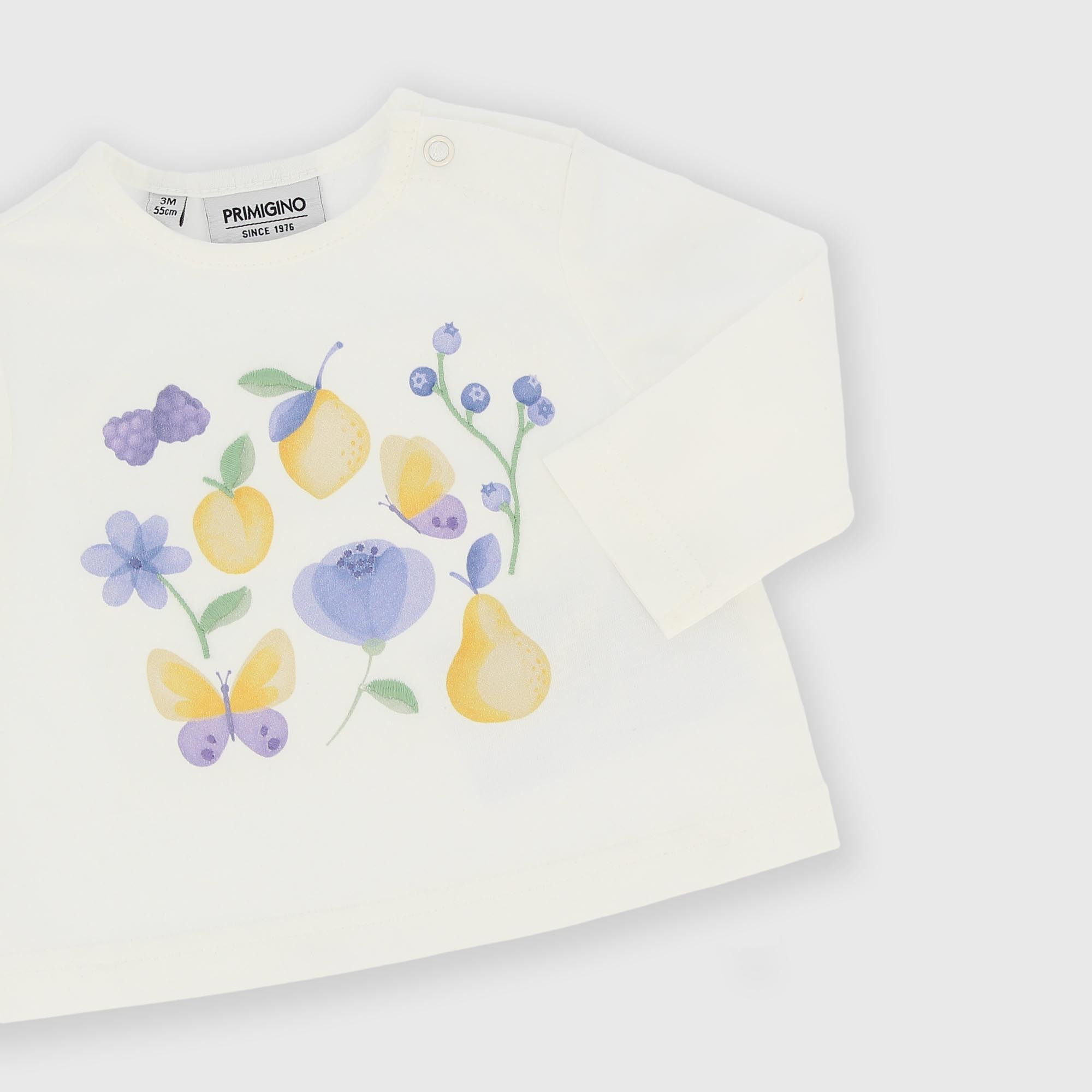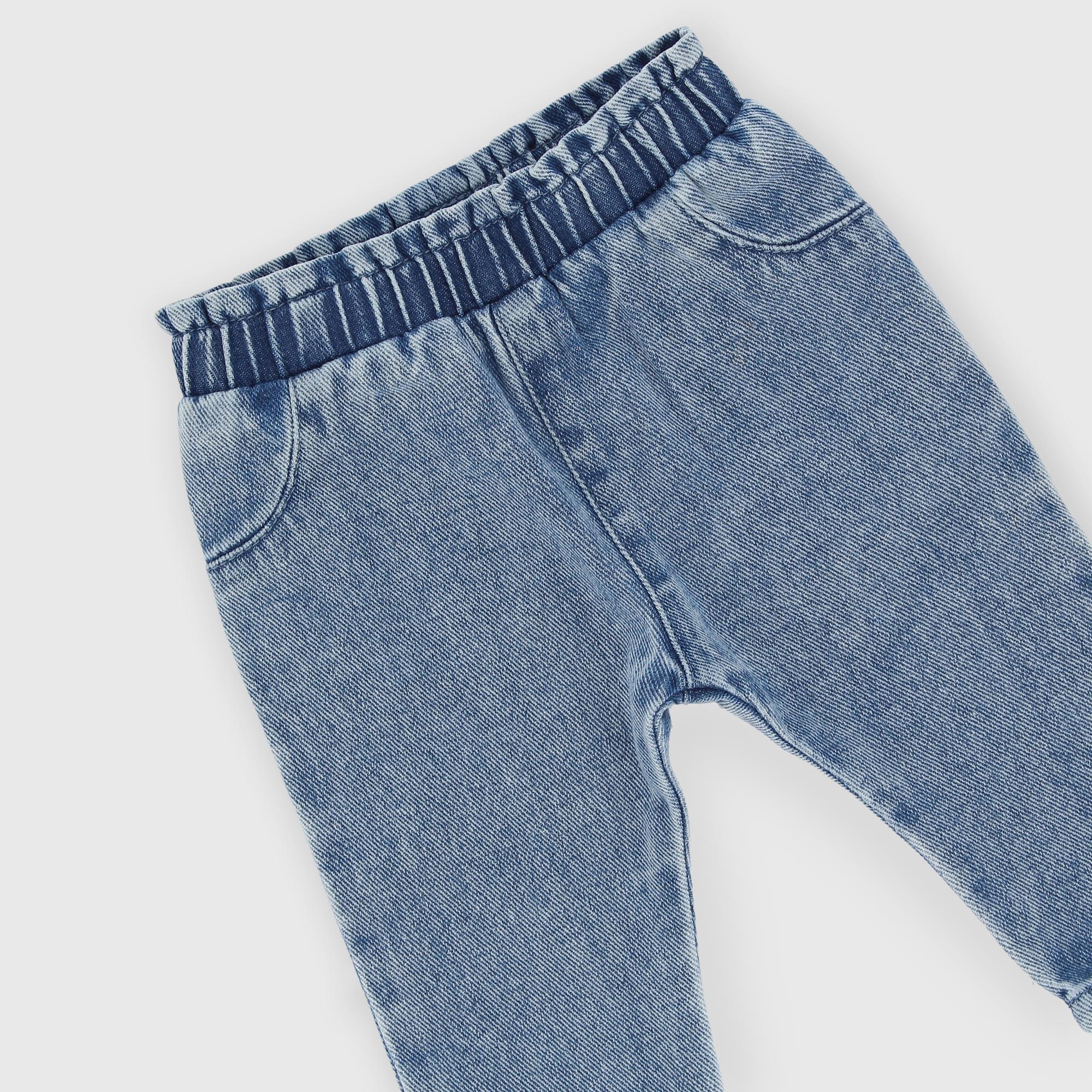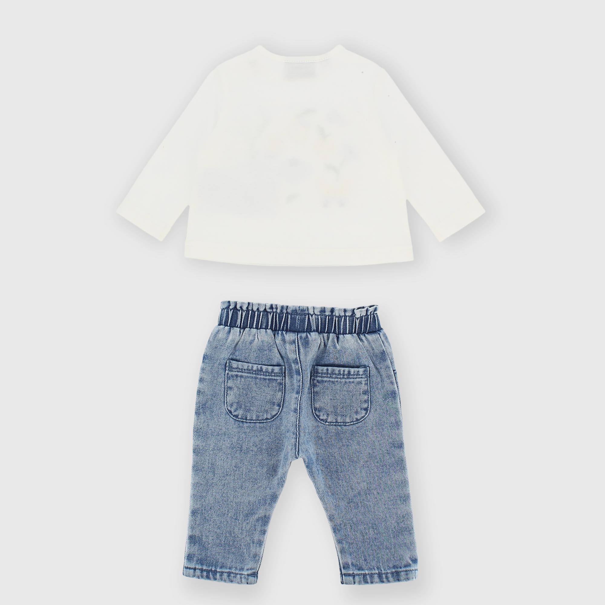 Ensemble composé de deux pièces. T-shirt en jersey, col rond, manches longues. Fermeture boutons-pression sur l'épaule. Impression sur le devant. Pantalon en jean avec taille élastiquée. Fausses poches à l'avant et poches plaquées à l'arrière.