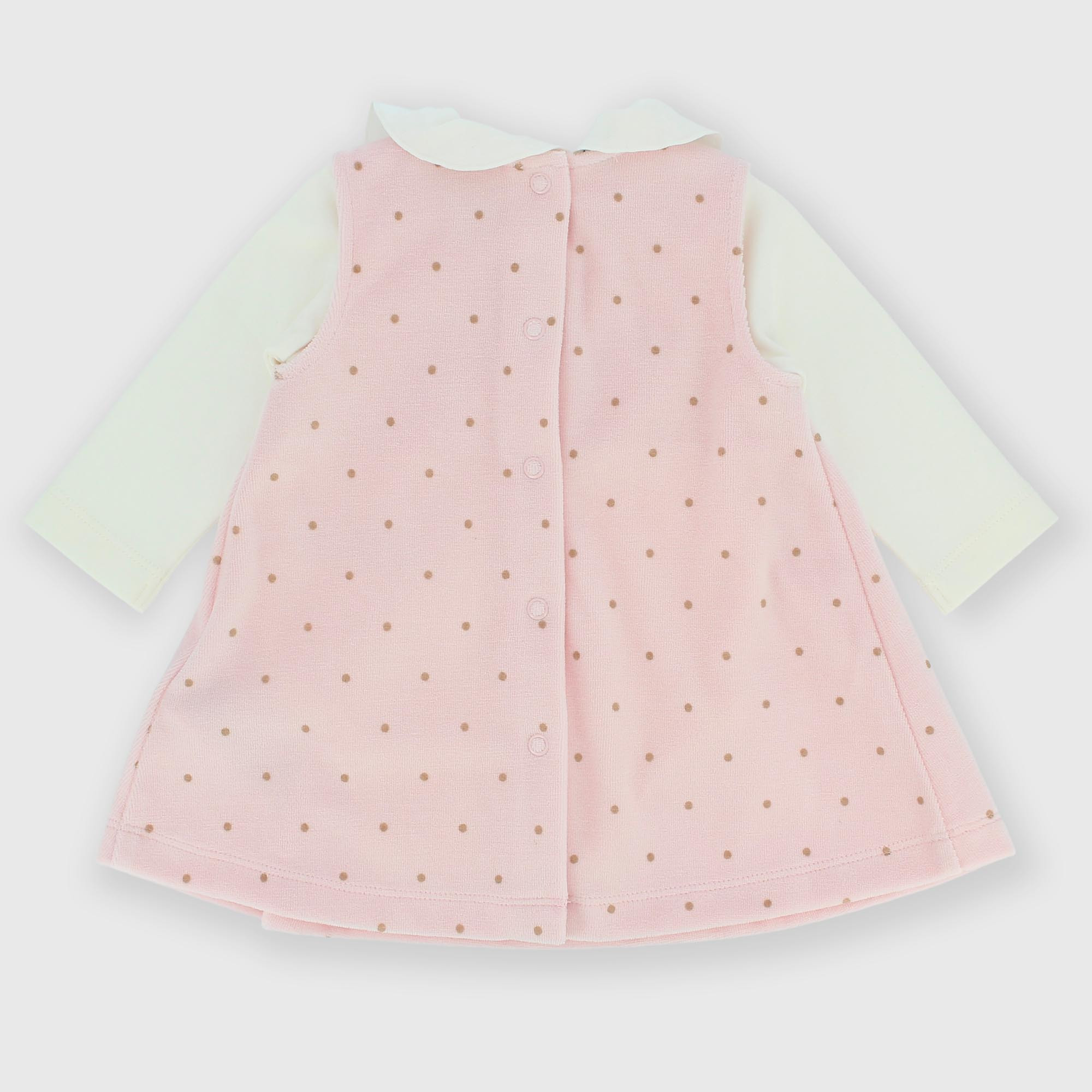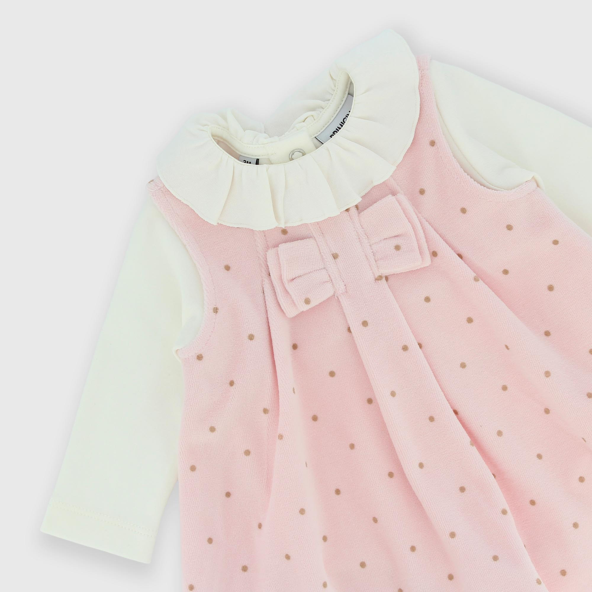Complet composé de deux pièces. Body en Jersey avec col, manches longues. Fermeture derrière avec boutons pression. Robe en chenille avec noeud et imprimé à pois all-over.