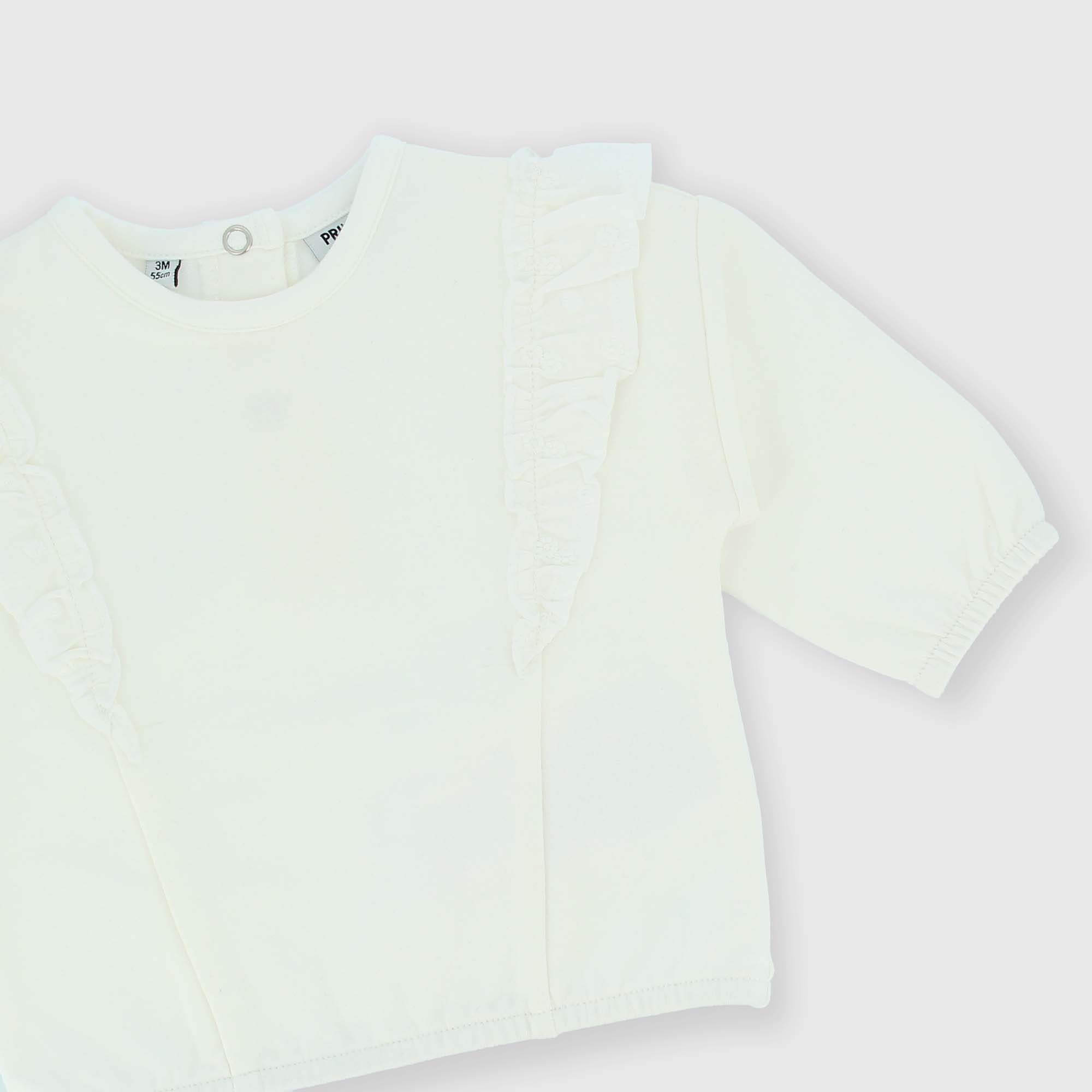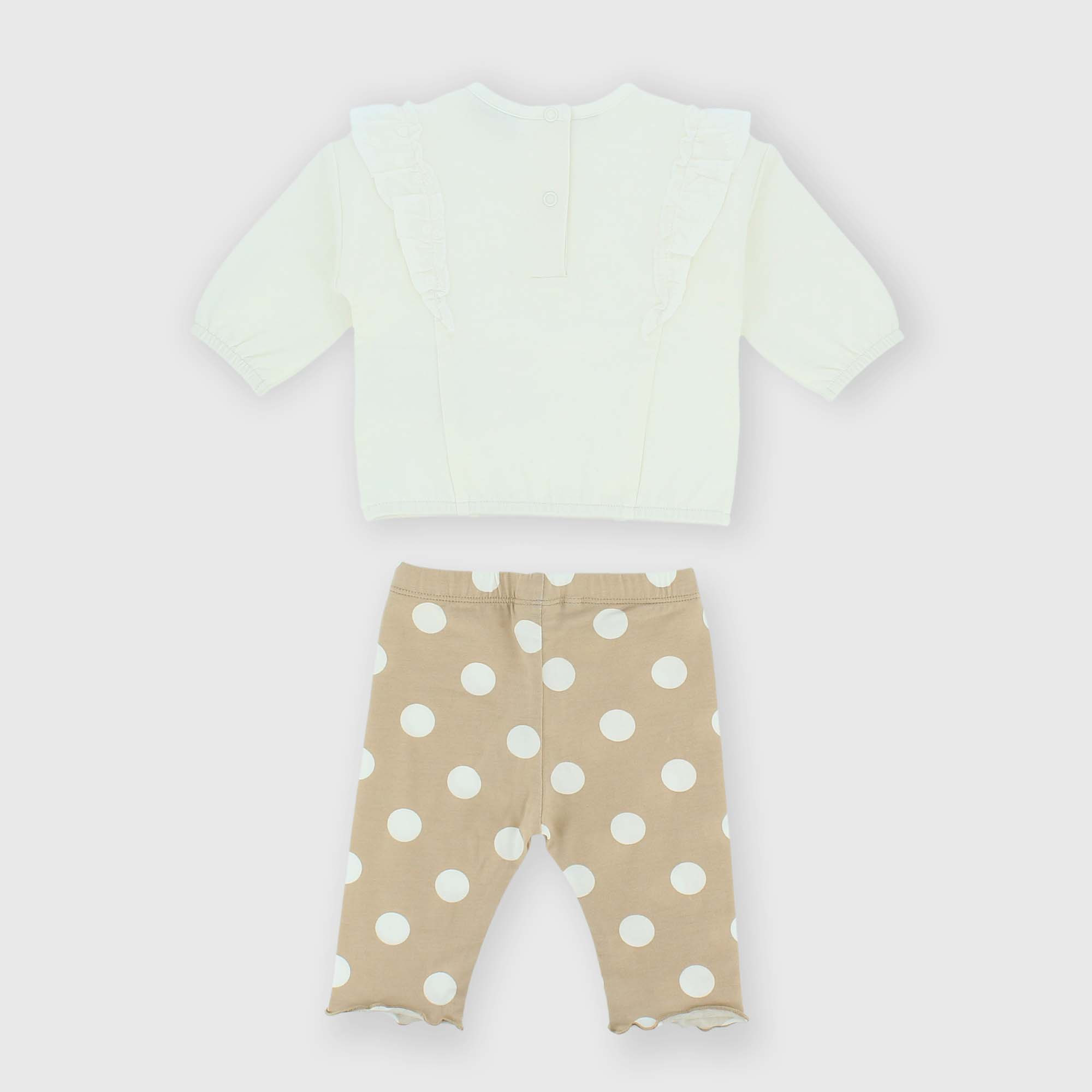 Complet composé de deux pièces. Pull en Jersey col-rond, manches longues. Fermeture derrière avec boutons pression. Volants en dentelle et poignets élastiques. Leggings en Jersey imprimé avec taille élastique.