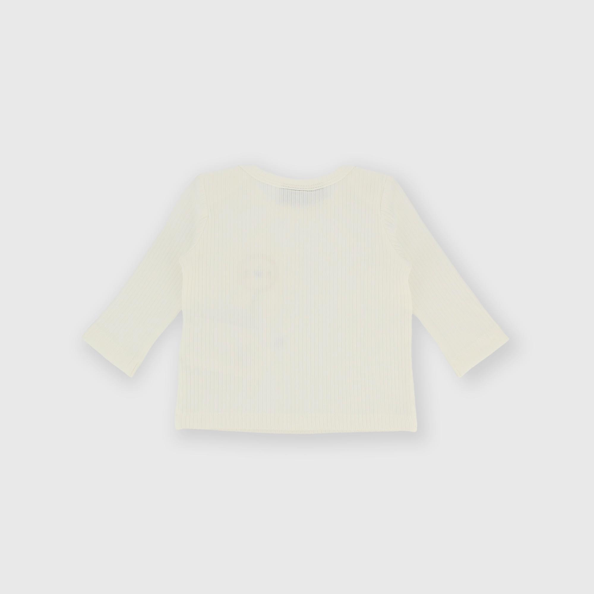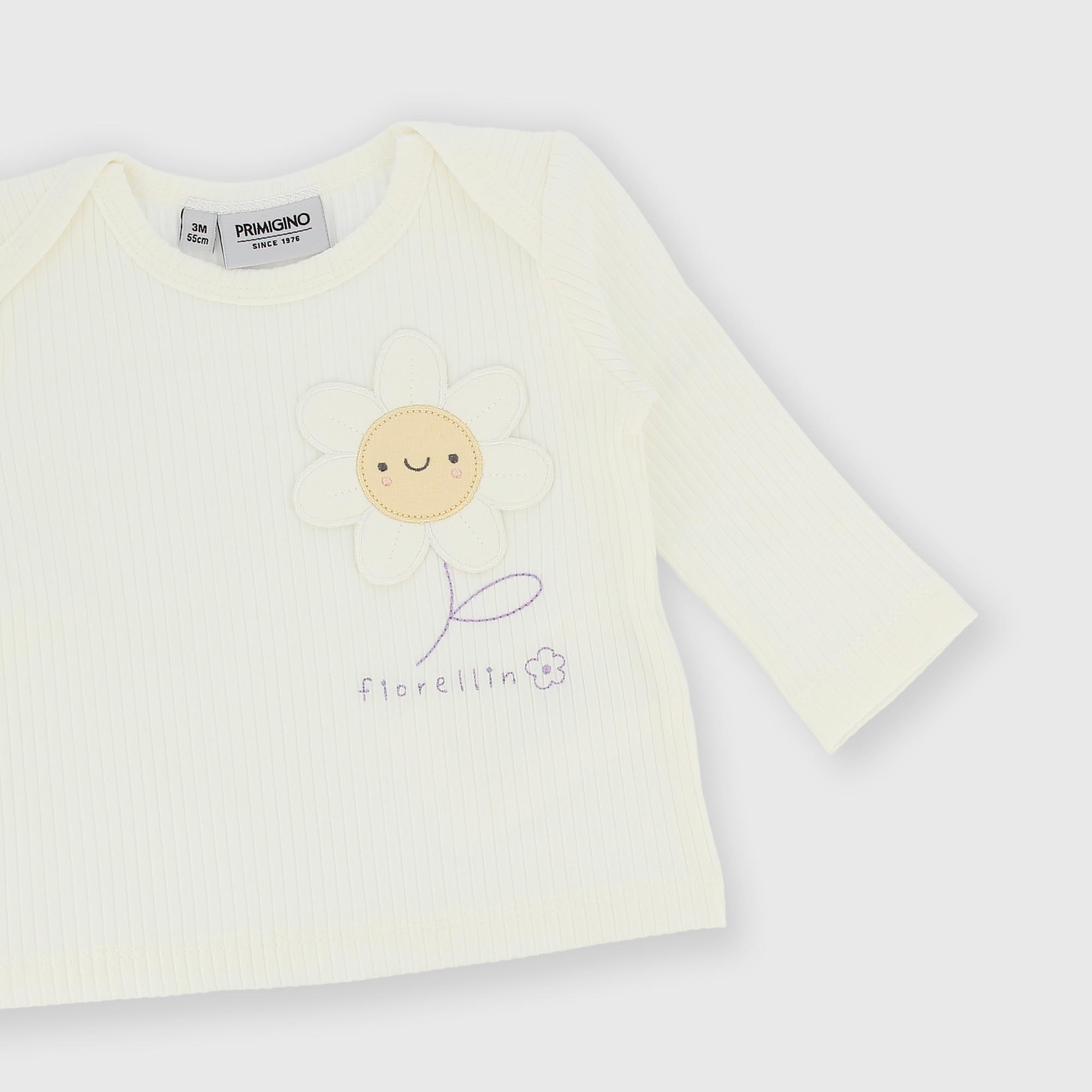 T-shirt côtelé, col rond, à manches longues. Fleur appliquée sur le devant.