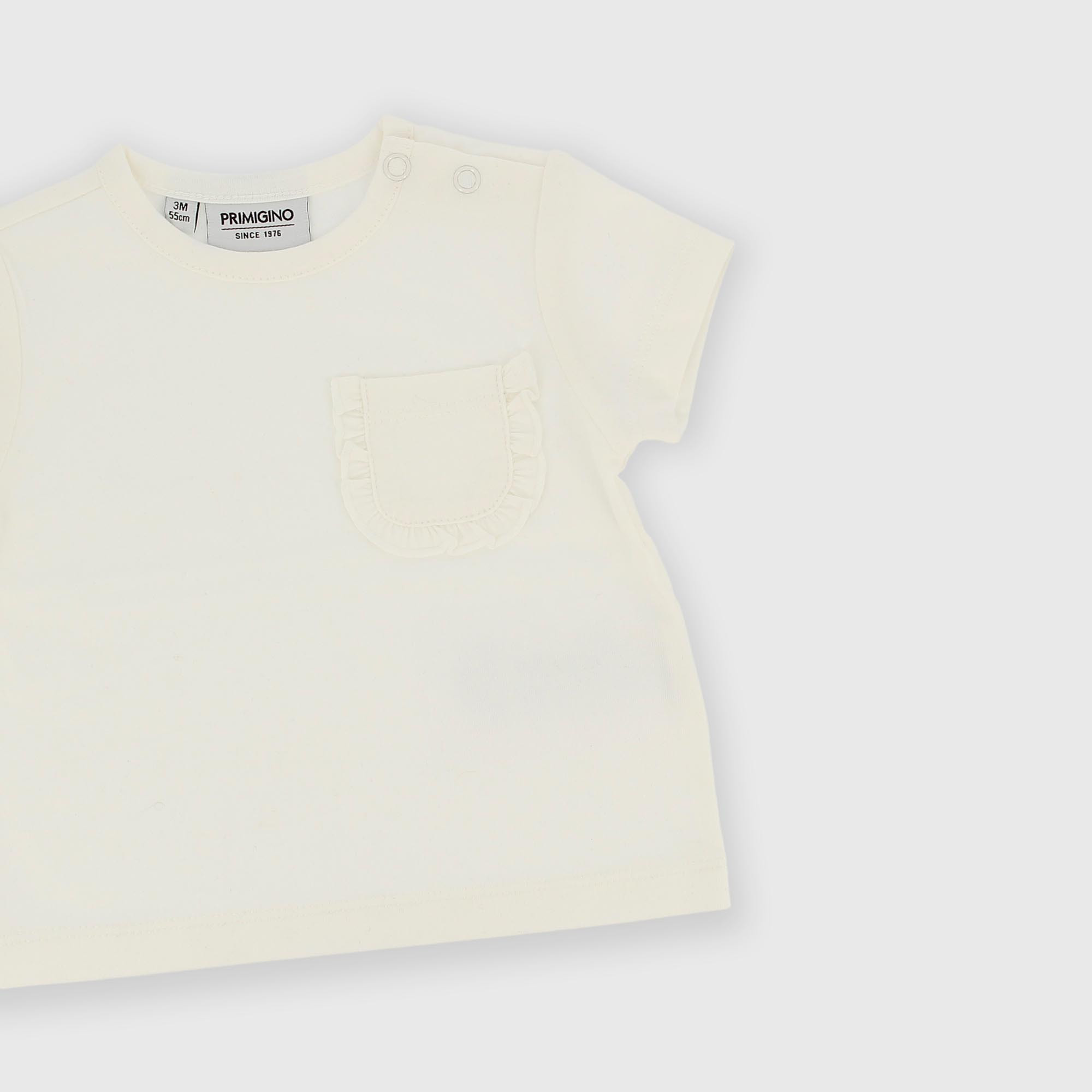 T-shirt en Jersey, col-rond, manches courtes. Fermeture avec bouton pression sur l'épaule. Poche avec volants sur la poitrine.