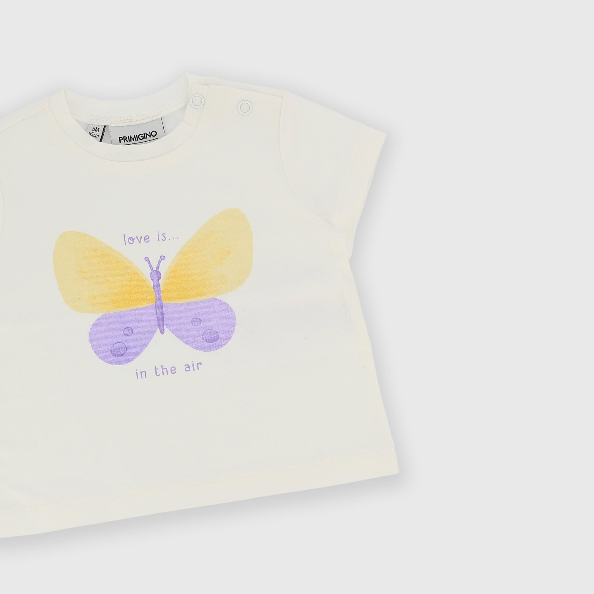 T-shirt en jersey, col rond, à manches courtes. Fermeture avec boutons-pression sur l'épaule. Imprimé papillon sur le devant.