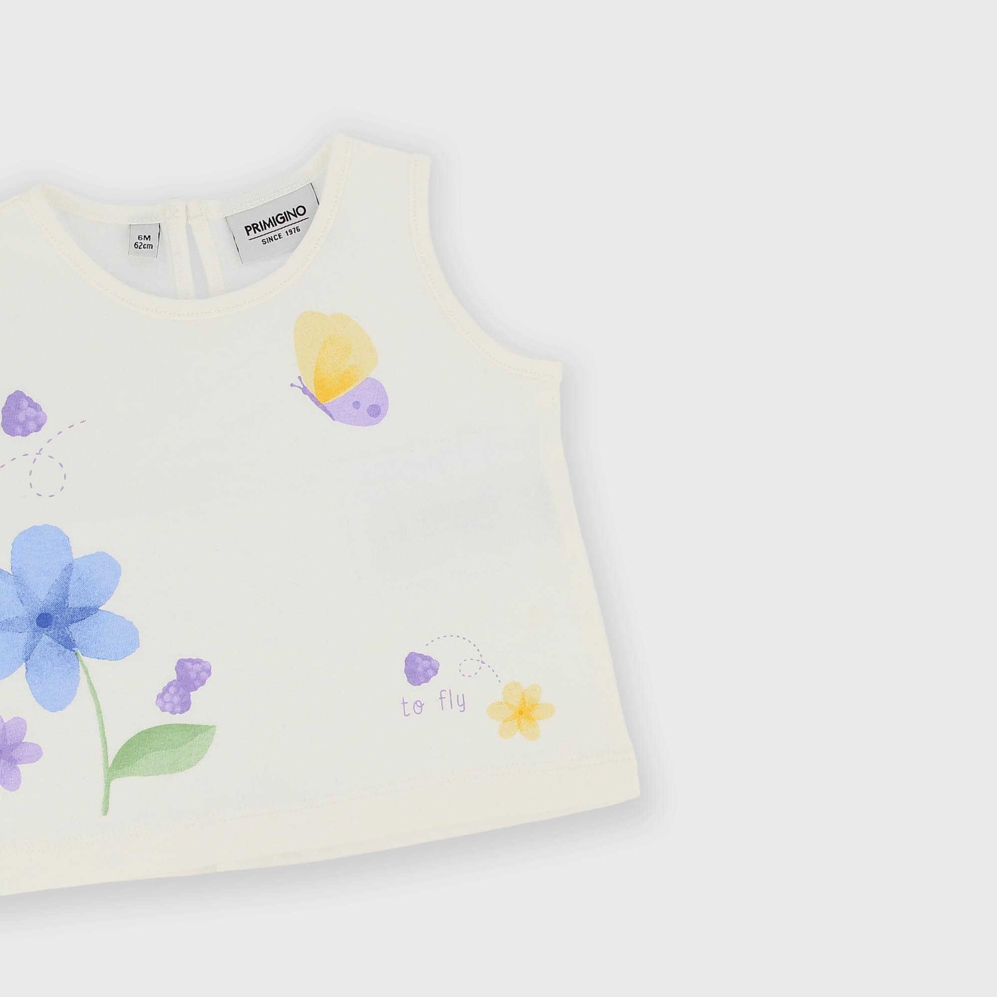Débardeur en jersey à col rond. Fermeture à forme de goutte avec bouton au dos. Impression sur le devant.