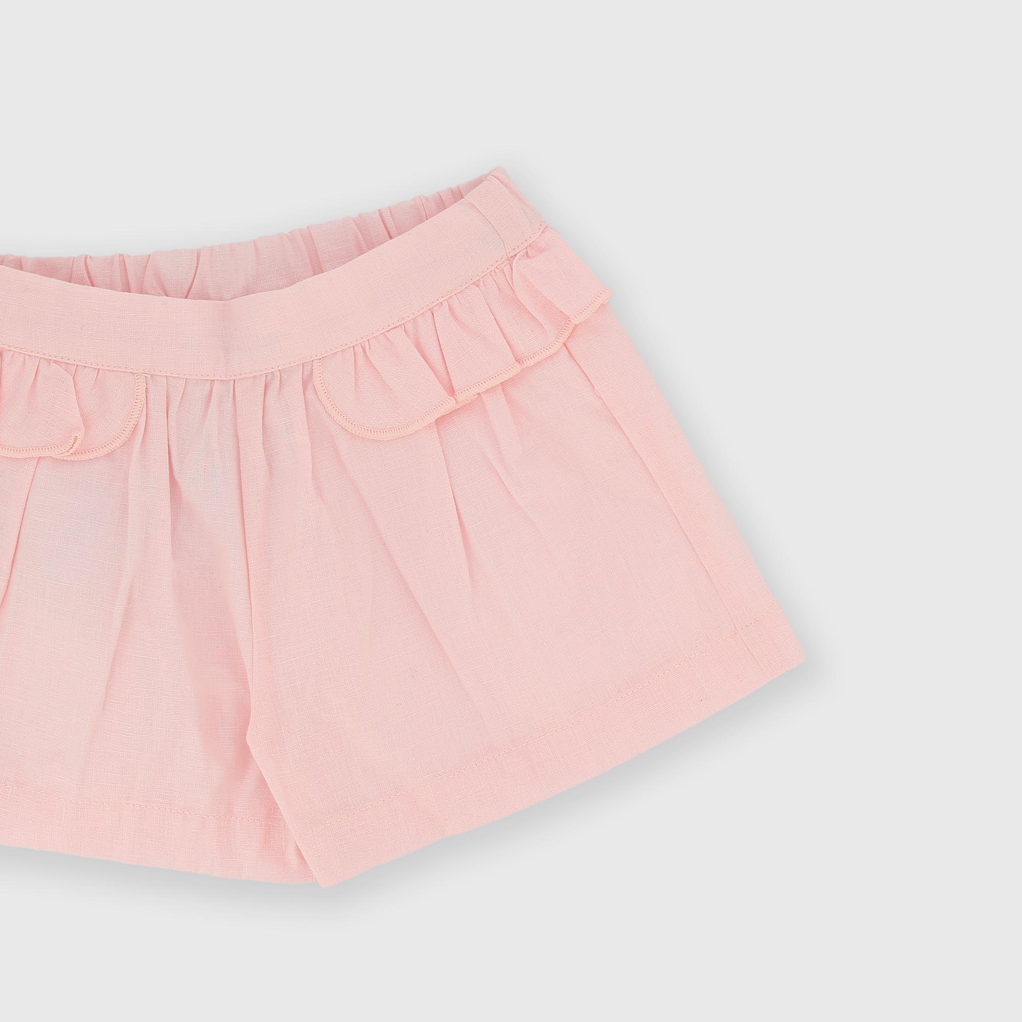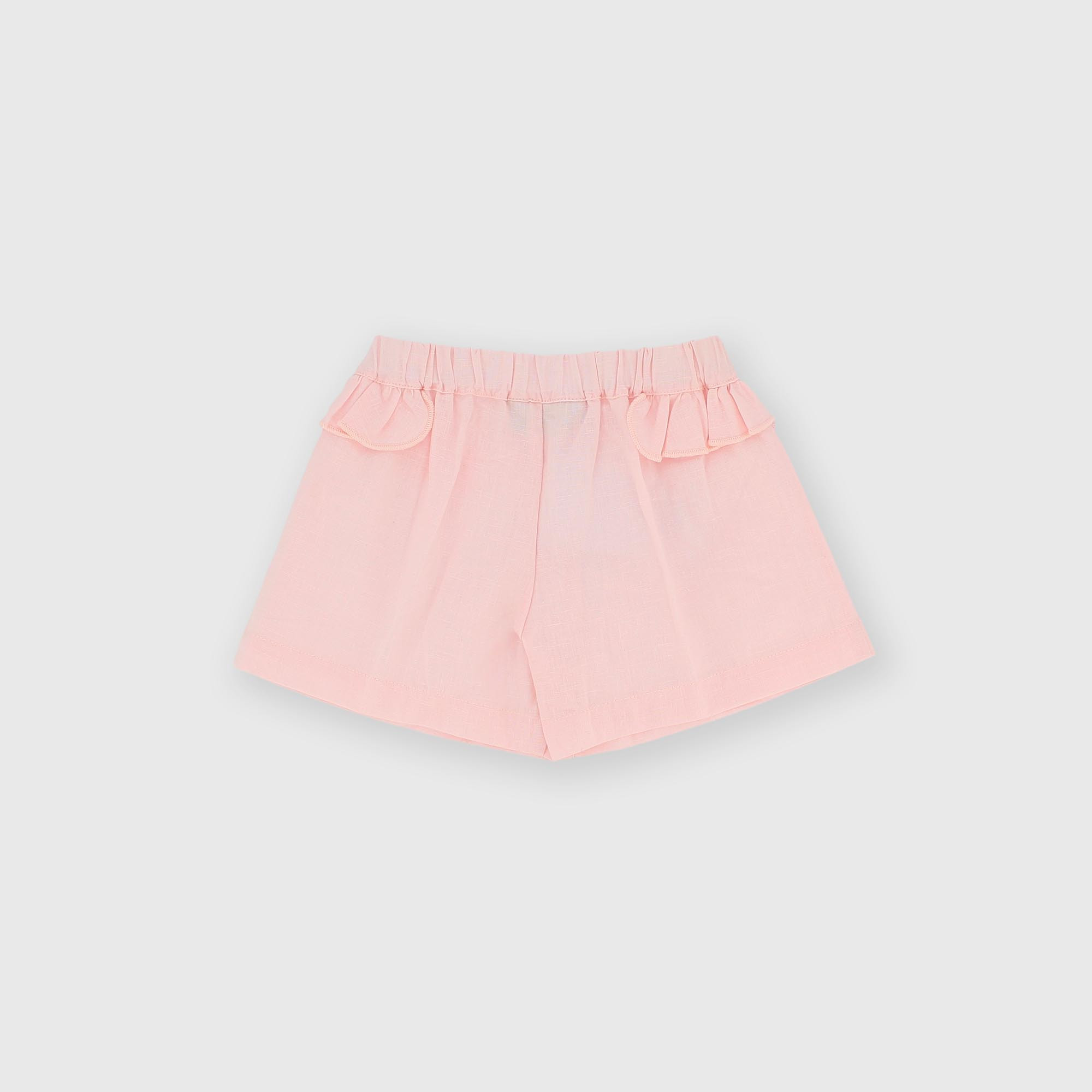 Shorts en coton-lin avec taille élastiquée et volants insérés sur la ceinture.
