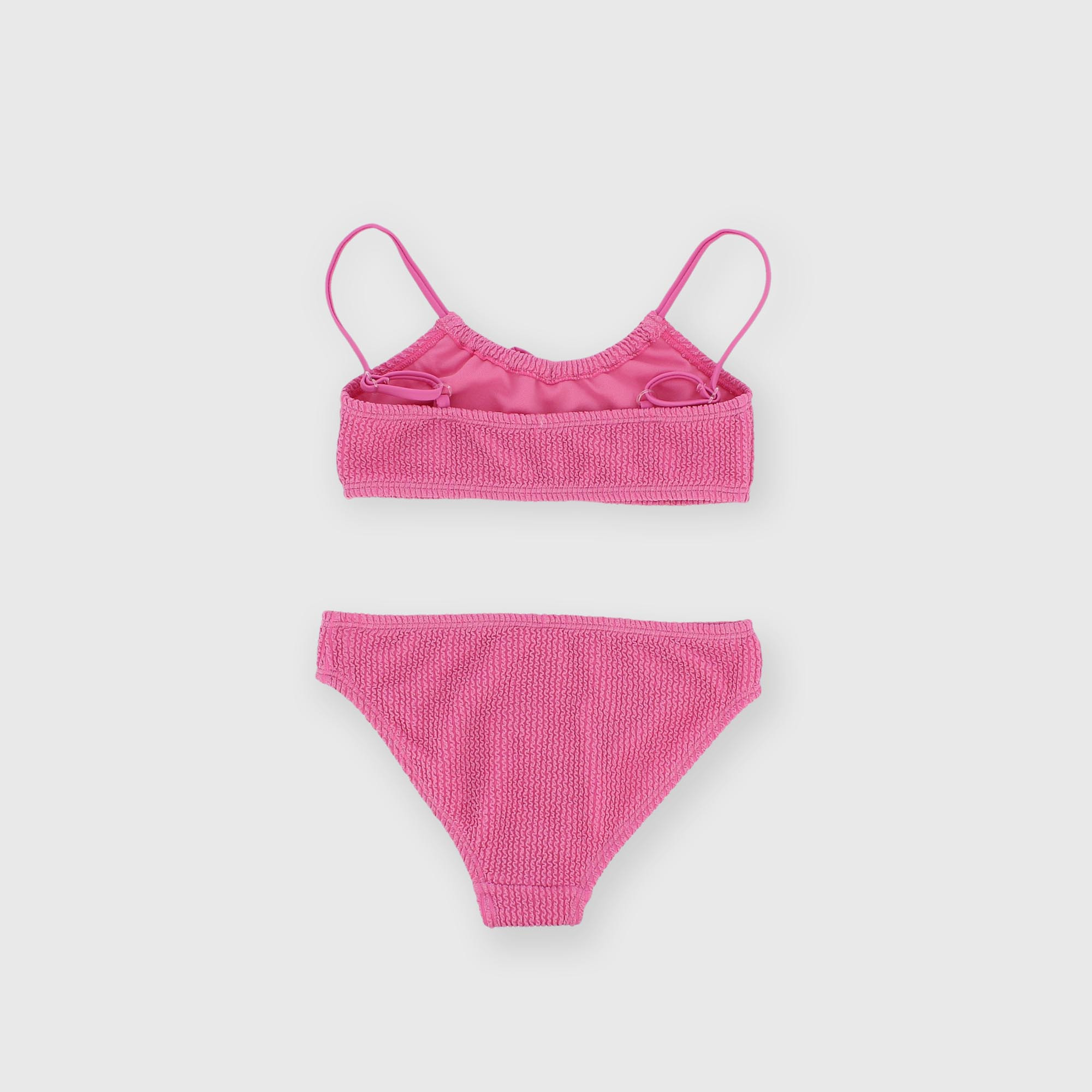 Bikini en lurex avec top et culotte assortis. Top avec fines bretelles et petit nœud appliqué à l'avant.