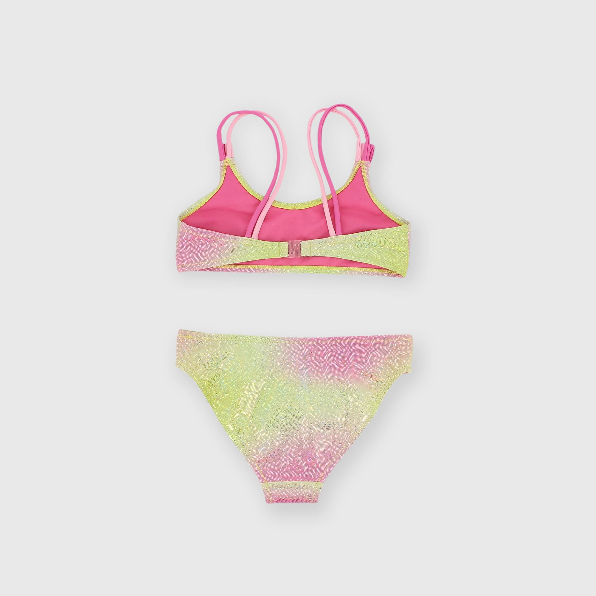 Bikini imprimé avec top et culotte assortis. Imprimé lurex effet Mermaid. Top à fines bretelles.