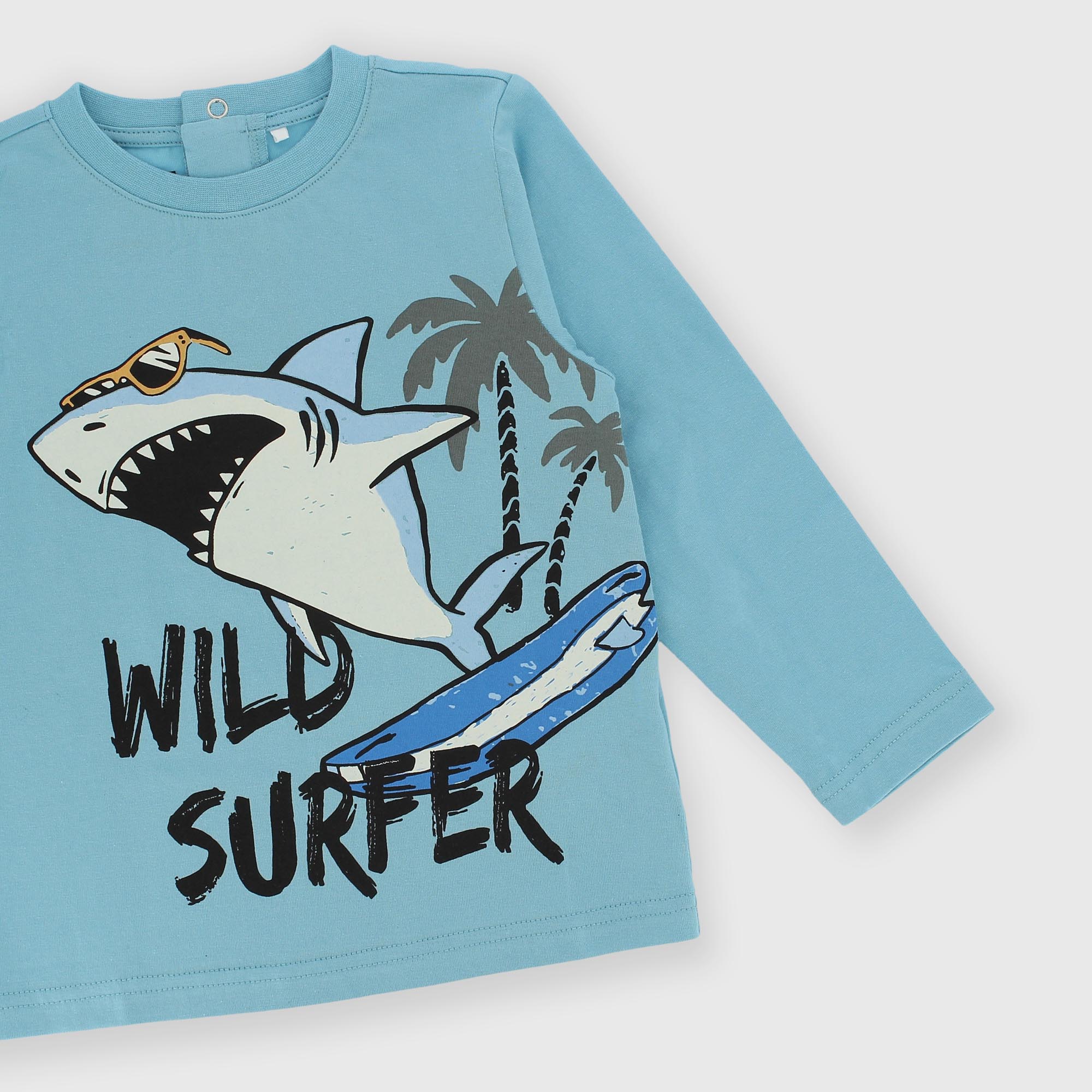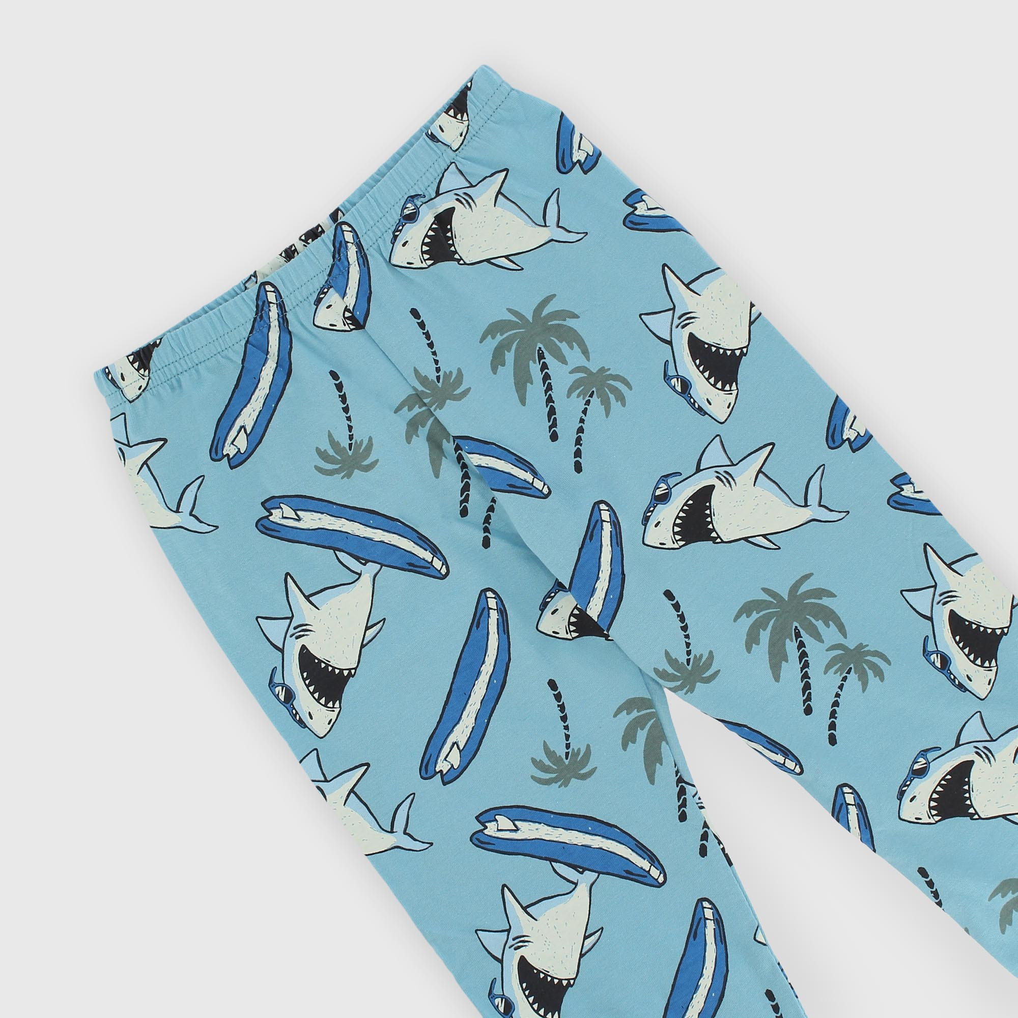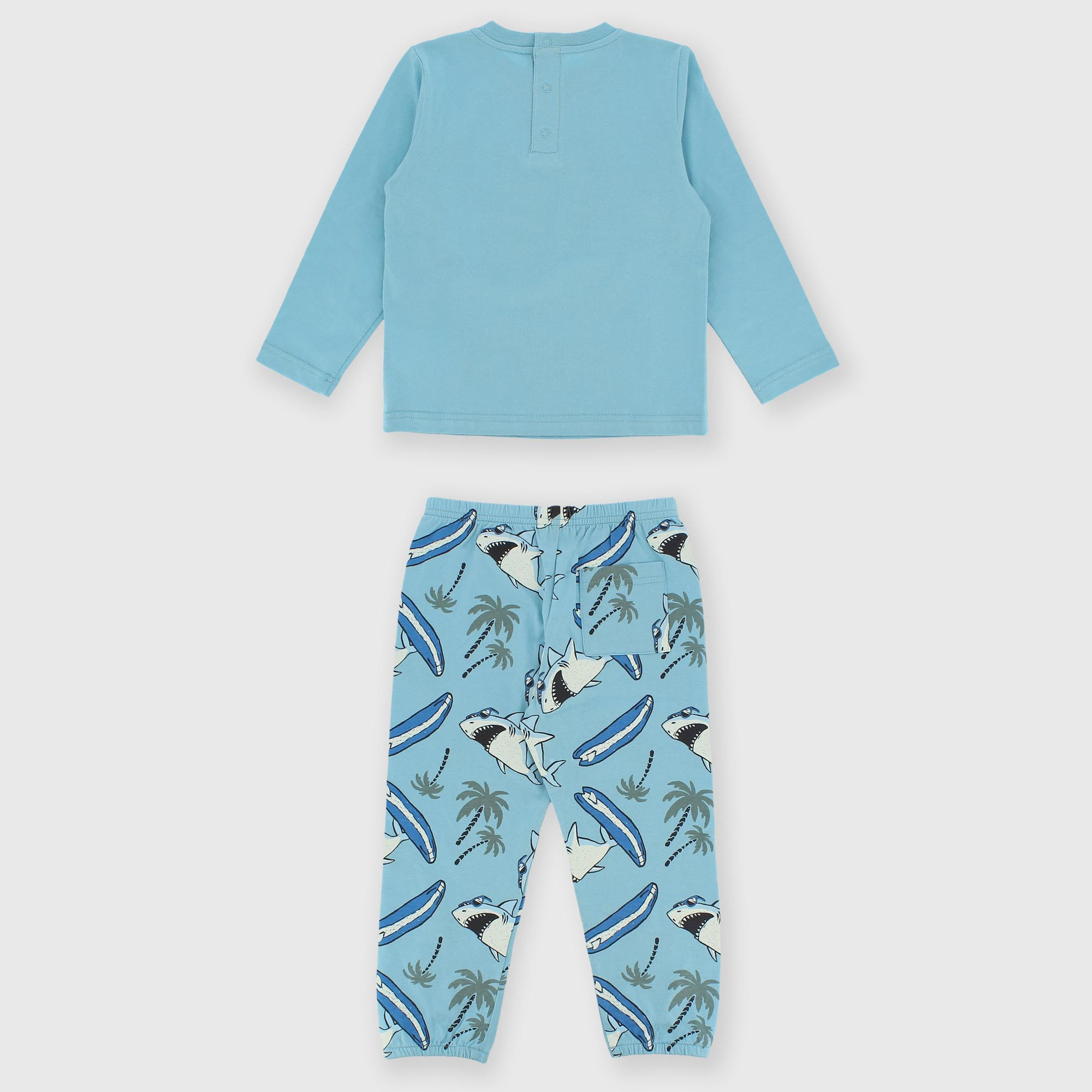 Pyjama complet en jersey. T-shirt à col rond et manches longues. Fermeture au dos avec des boutons-pression. Imprimé requin sur le devant. Pantalon avec taille élastique. Poche plaquée à l'arrière. Imprimé requins sur l'ensemble. Bas élastiqué.