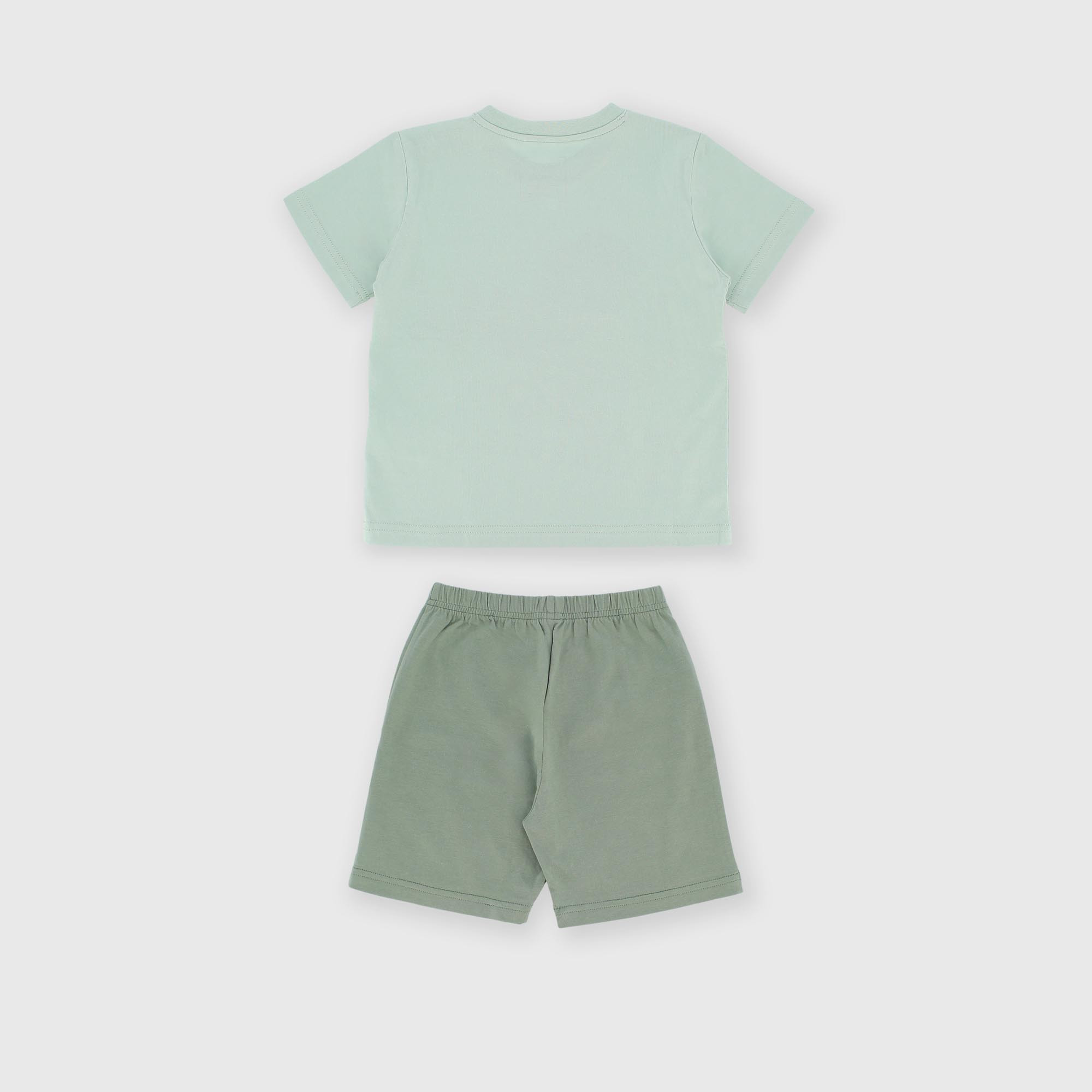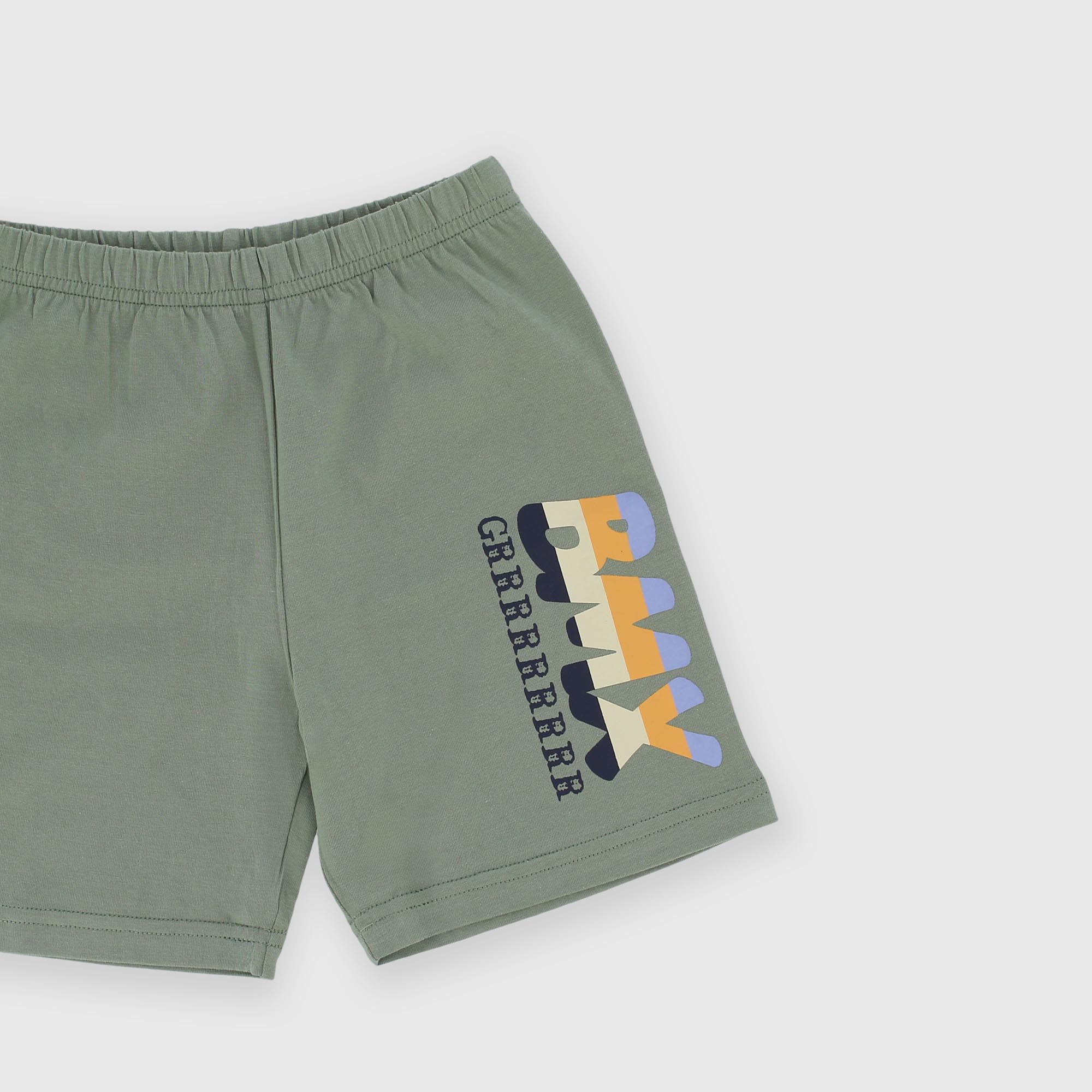 Pyjama complet en jersey. T-shirt col rond à manches courtes, fermeture par pressions sur l'épaule. Imprimé dinosaure sur le devant. Bermuda avec taille élastique et imprimé sur la jambe.