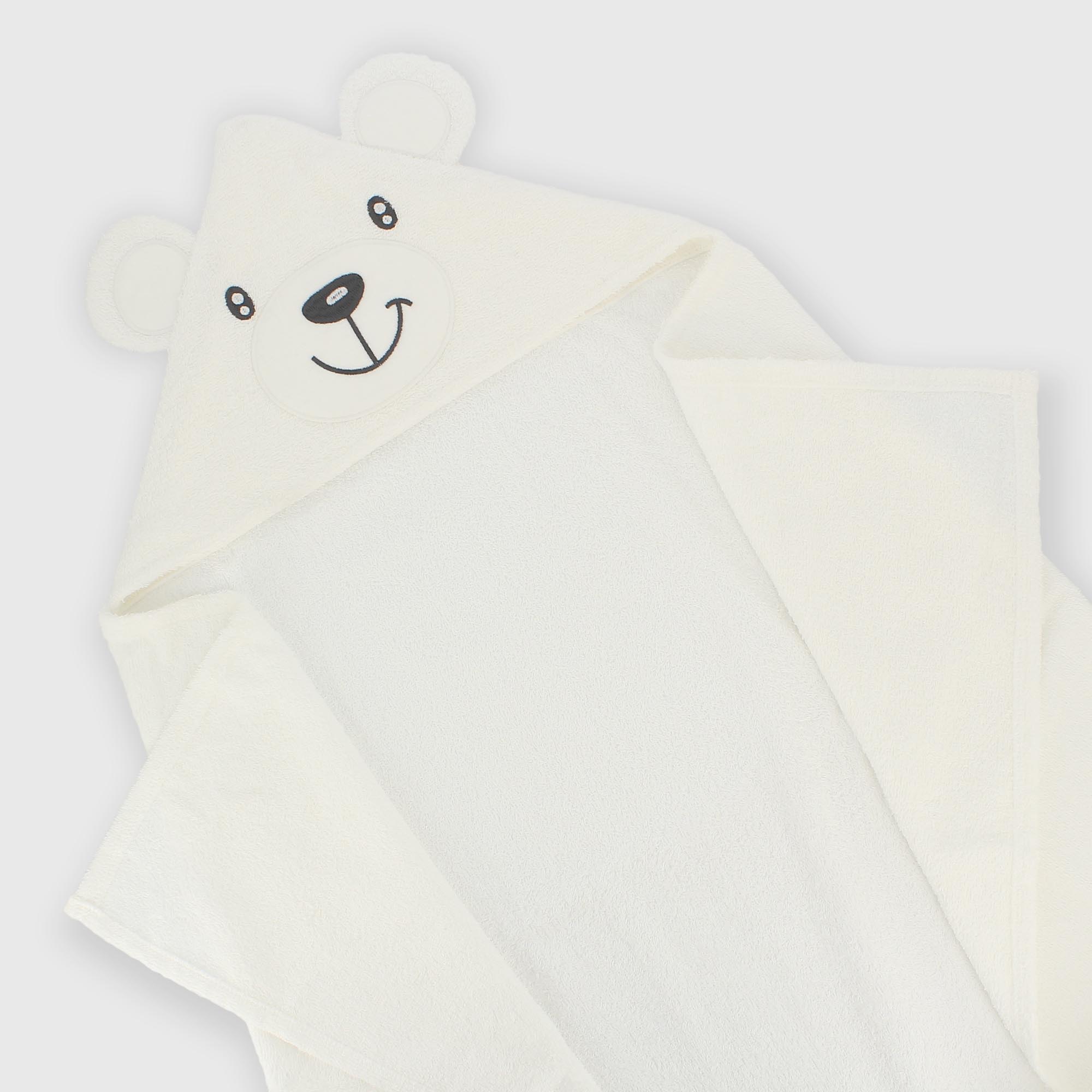 Triangle en éponge pour bébé avec capuche doublée en interlock en forme d'ourson.