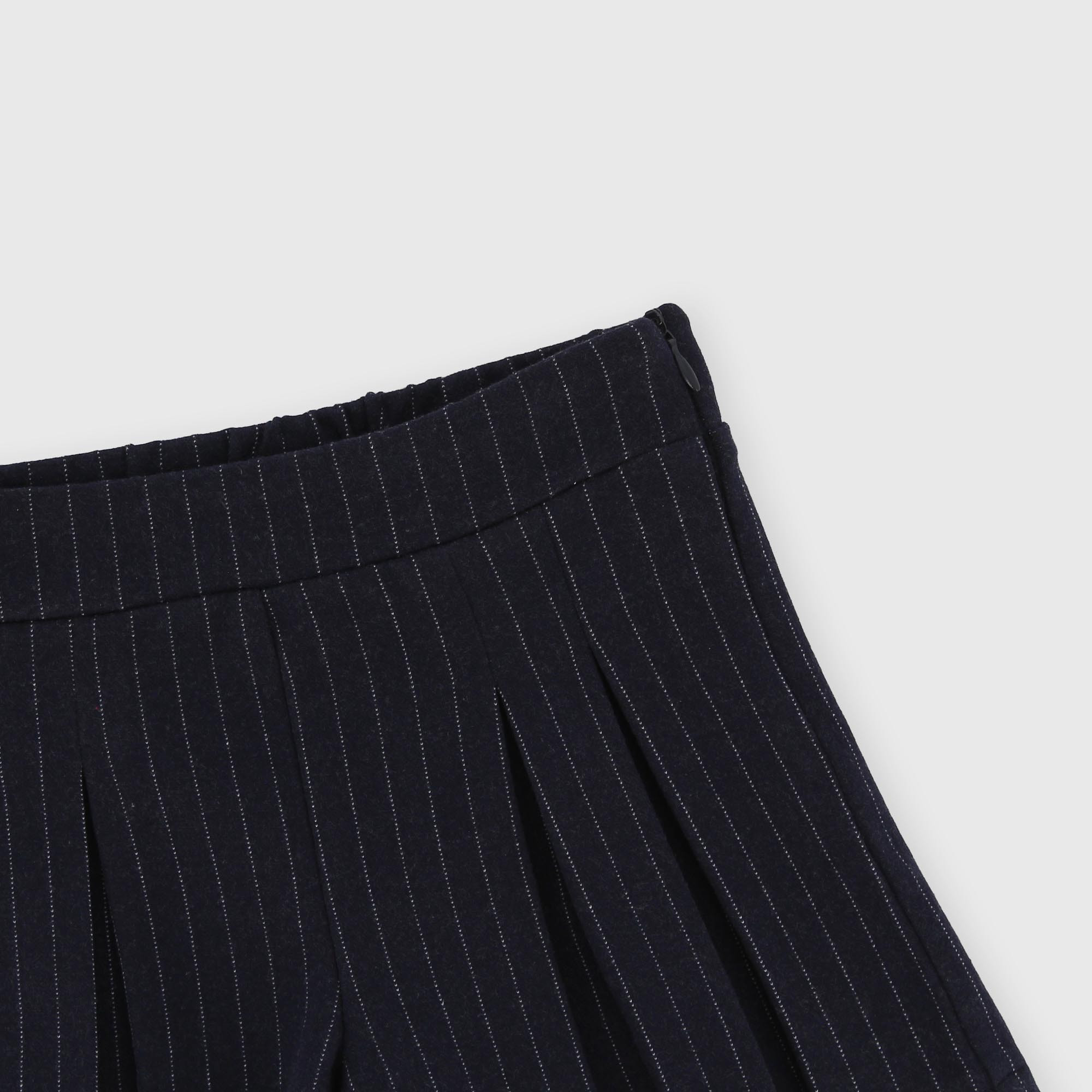 Short en tissu à fines rayures. Fermeture zippée sur le côté. Plis devant et derrière.