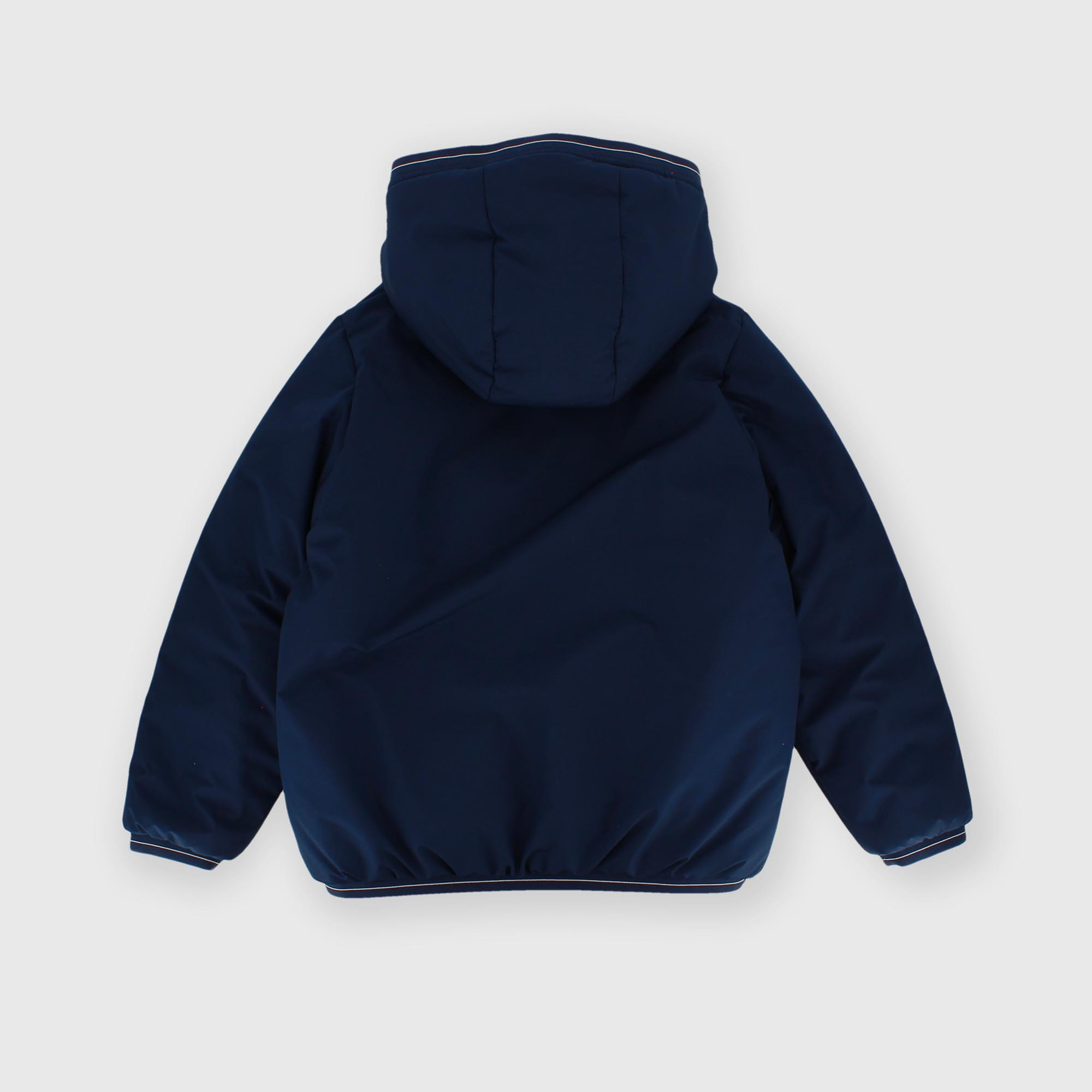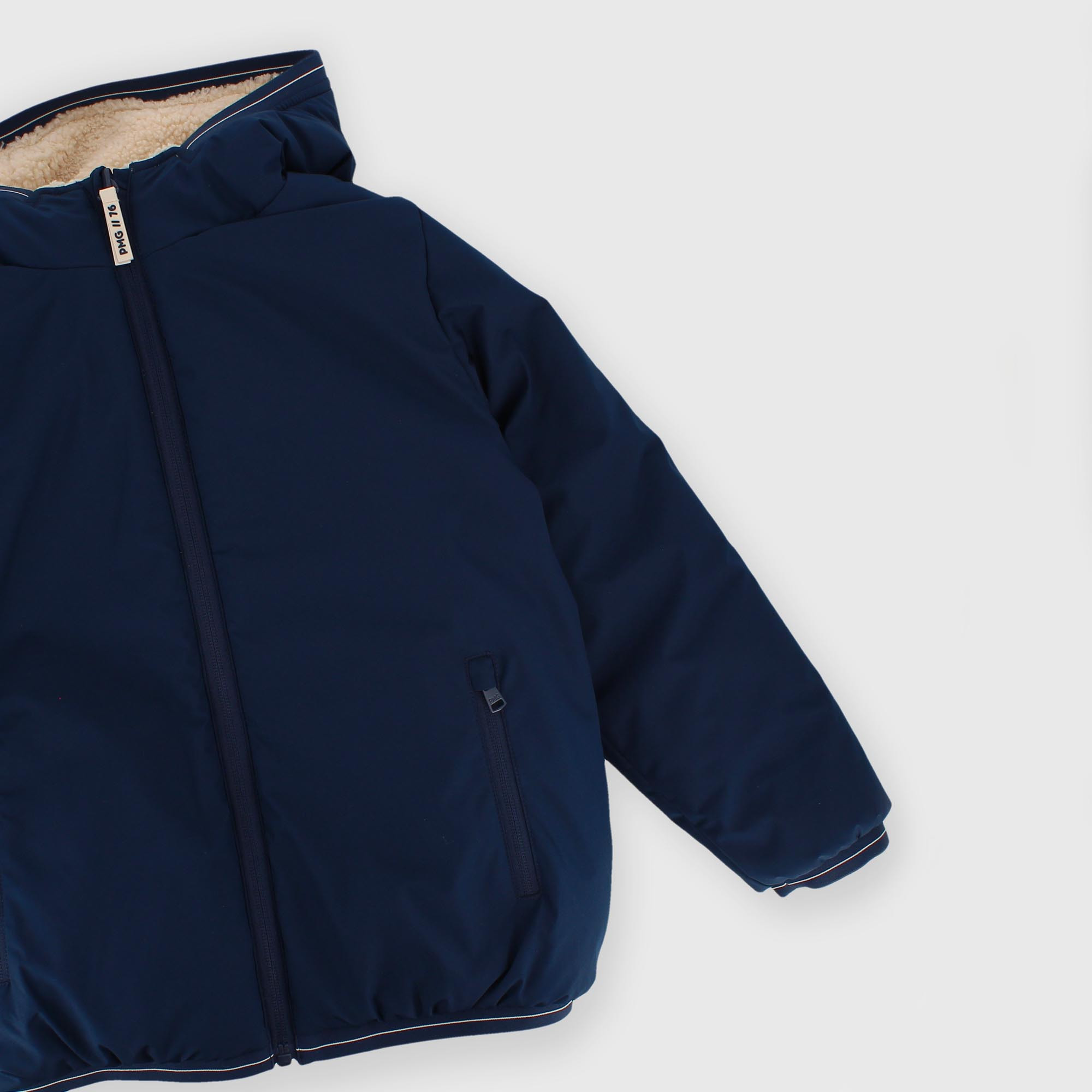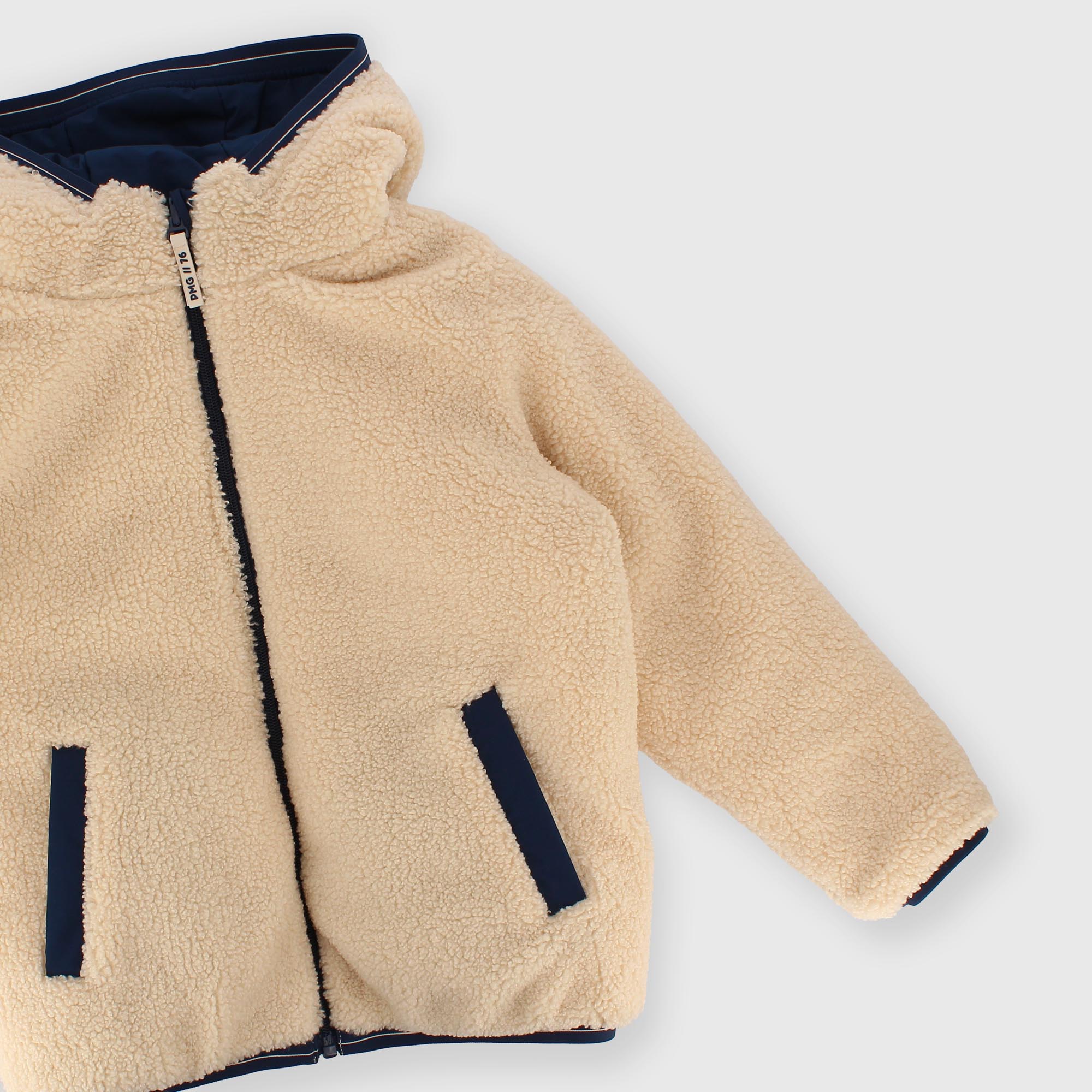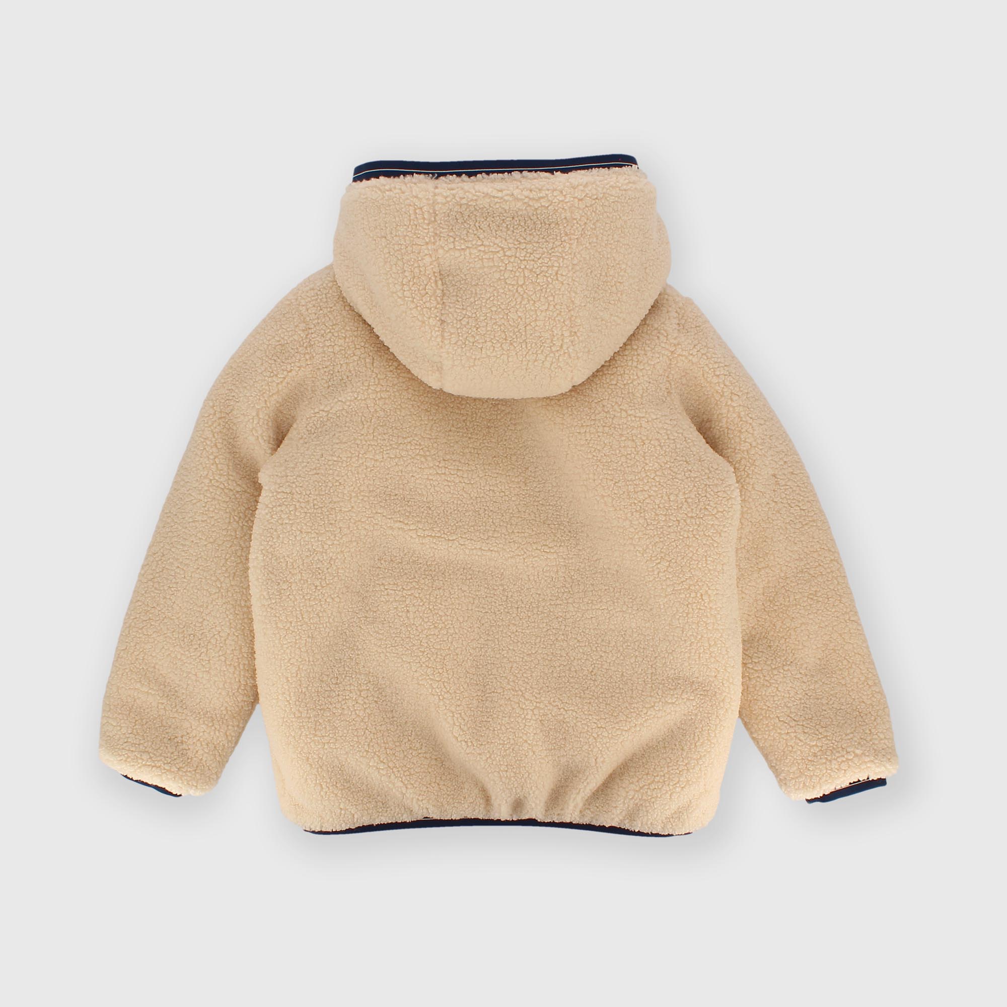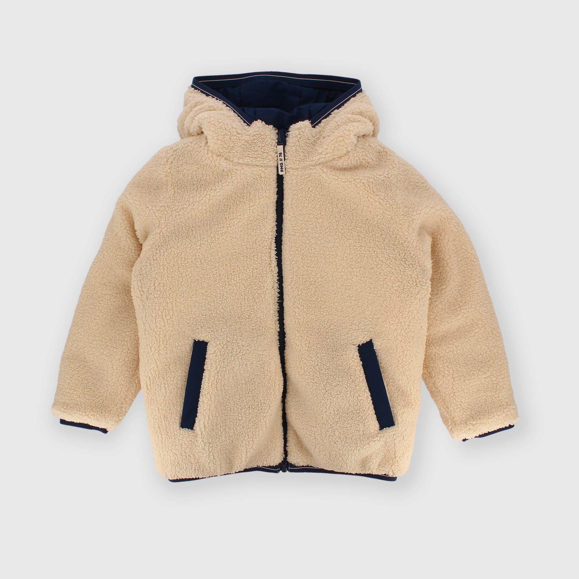 Veste double face à capuche et manches longues. Un côté en nylon avec poches zippées, l'autre en fausse fourrure. Fermeture zippée sur le devant. Capuche, poignets et bas élastiqués.