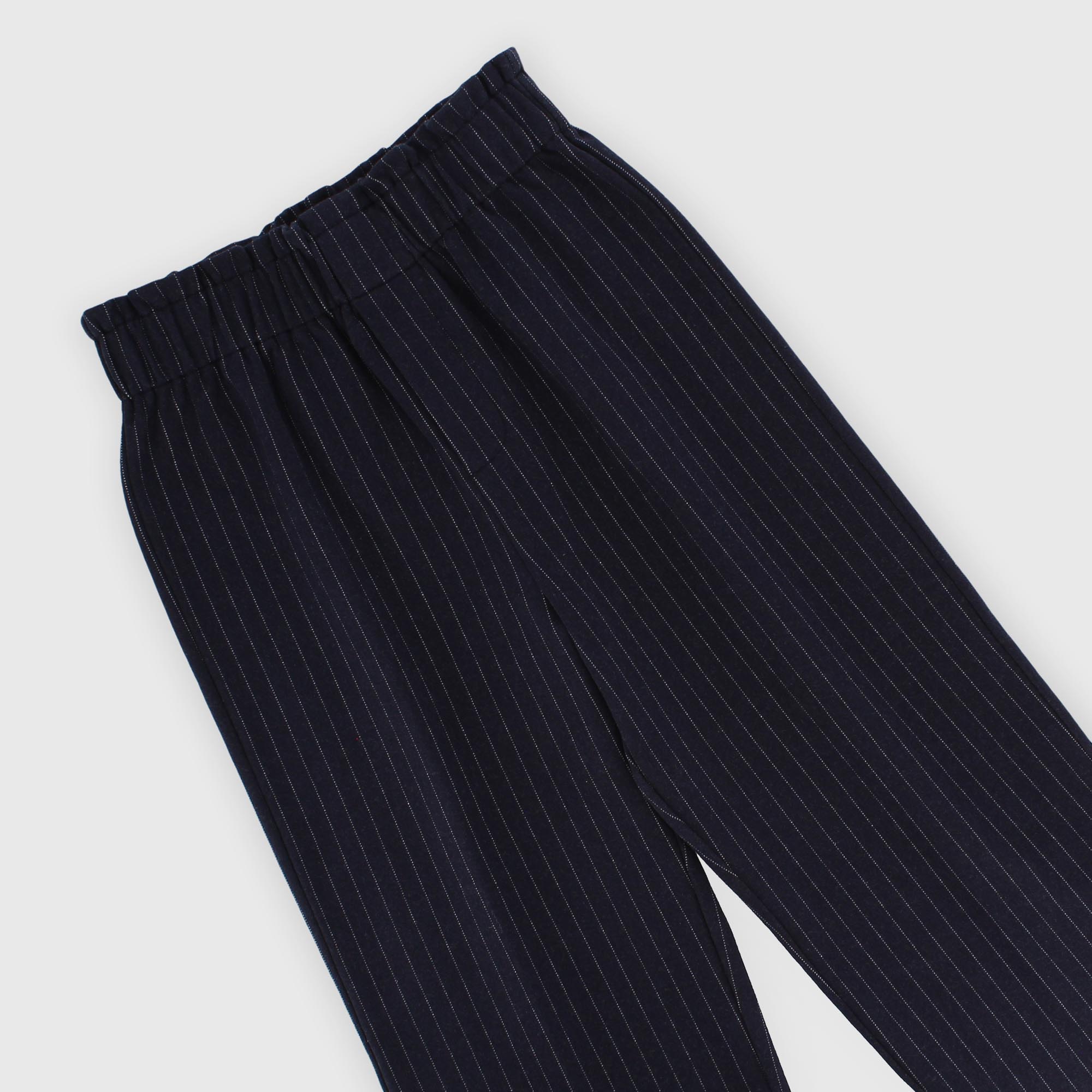 Pantalon large en tissu à fines rayures avec taille élastiquée.