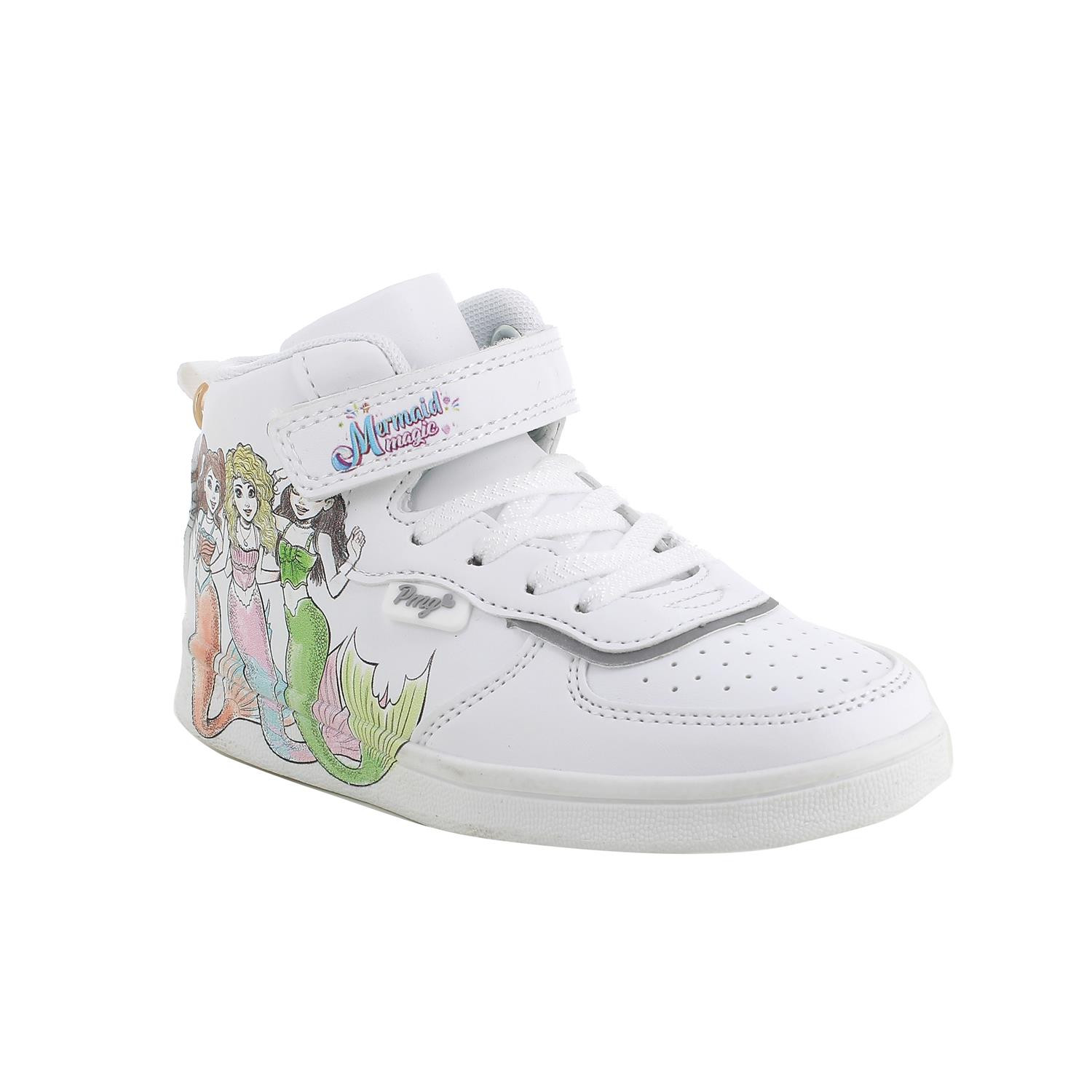 Ces sneakers demi-hauteur Mermaid Magic sont parfaites pour celles qui aiment un style affirmé, mais avec une touche enchantée. Les trois sirènes imprimées offrent un monde de fantaisie et de couleur à chaque look, transformant ces chaussures en un détail de style vraiment unique. Le design haut de la cheville offre soutien et caractère, tandis que la fermeture velcro pratique et les lacets élastiques rendent l'enfilage confortable et rapide. Le charme accroché à l'arrière est un détail supplémentaire qui peut devenir un accessoire magique pour personnaliser des sacs, des sacs à dos ou des étuis.