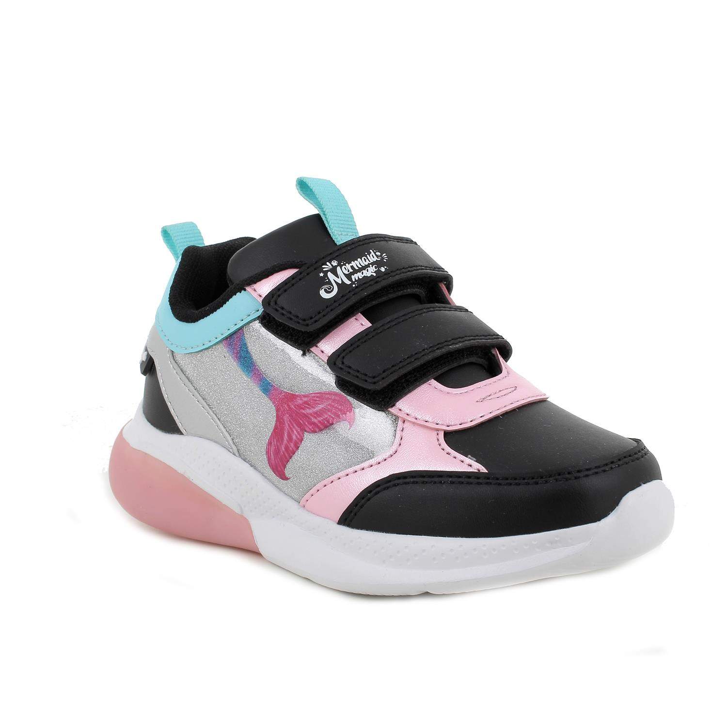 Ces sneakers Mermaid Magic™ sont un concentré d'énergie, de couleur et de fantaisie ! La nageoire de sirène appliquée sur le côté est le détail qui attire immédiatement le regard, parfaite pour toutes les petites filles qui rêvent d'aventures sous la mer. Le design sportif avec semelle épaisse et silhouette moderne les rend idéales pour jouer, courir et se déplacer librement avec style. La double fermeture velcro assure un enfilage pratique et rapide, tandis que les détails brillants et les finitions multicolores offrent une touche de mode irrésistible.