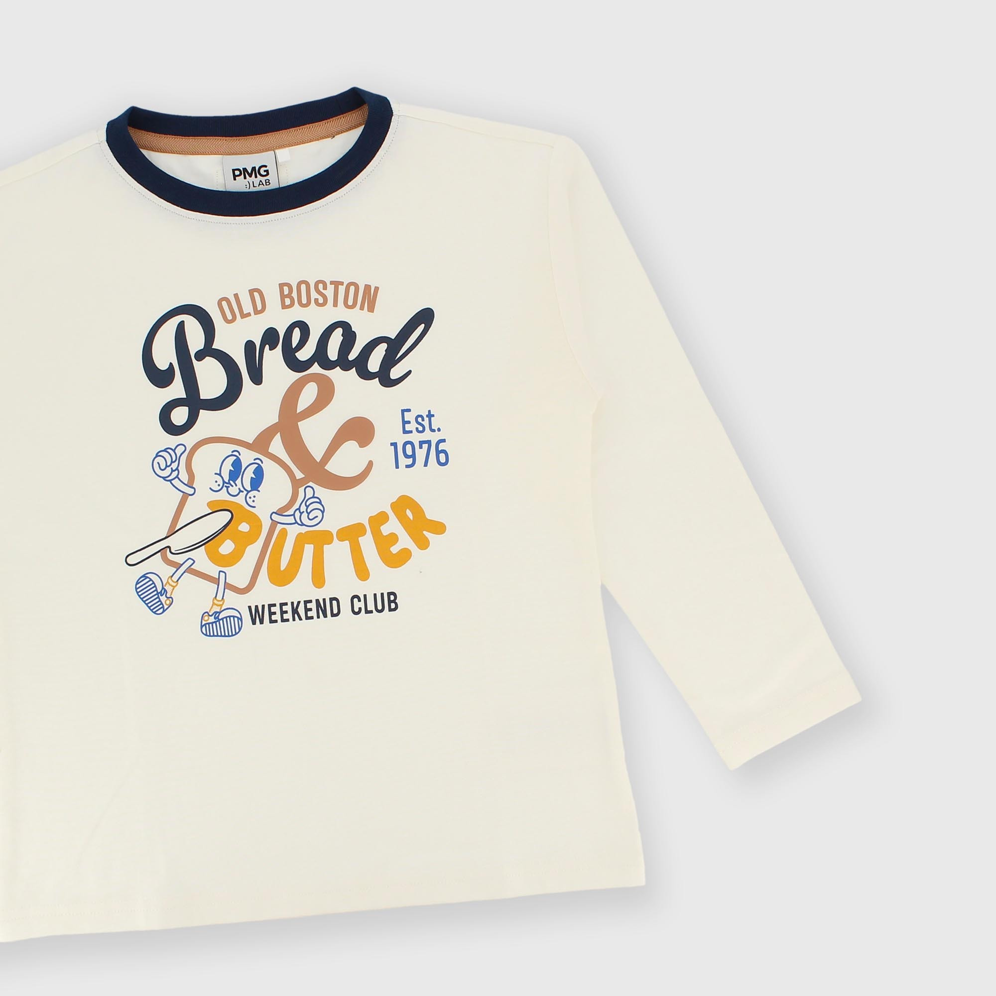 T-shirt en jersey, col rond, manches longues. Imprimé sur le devant. Col côtelé contrasté.
