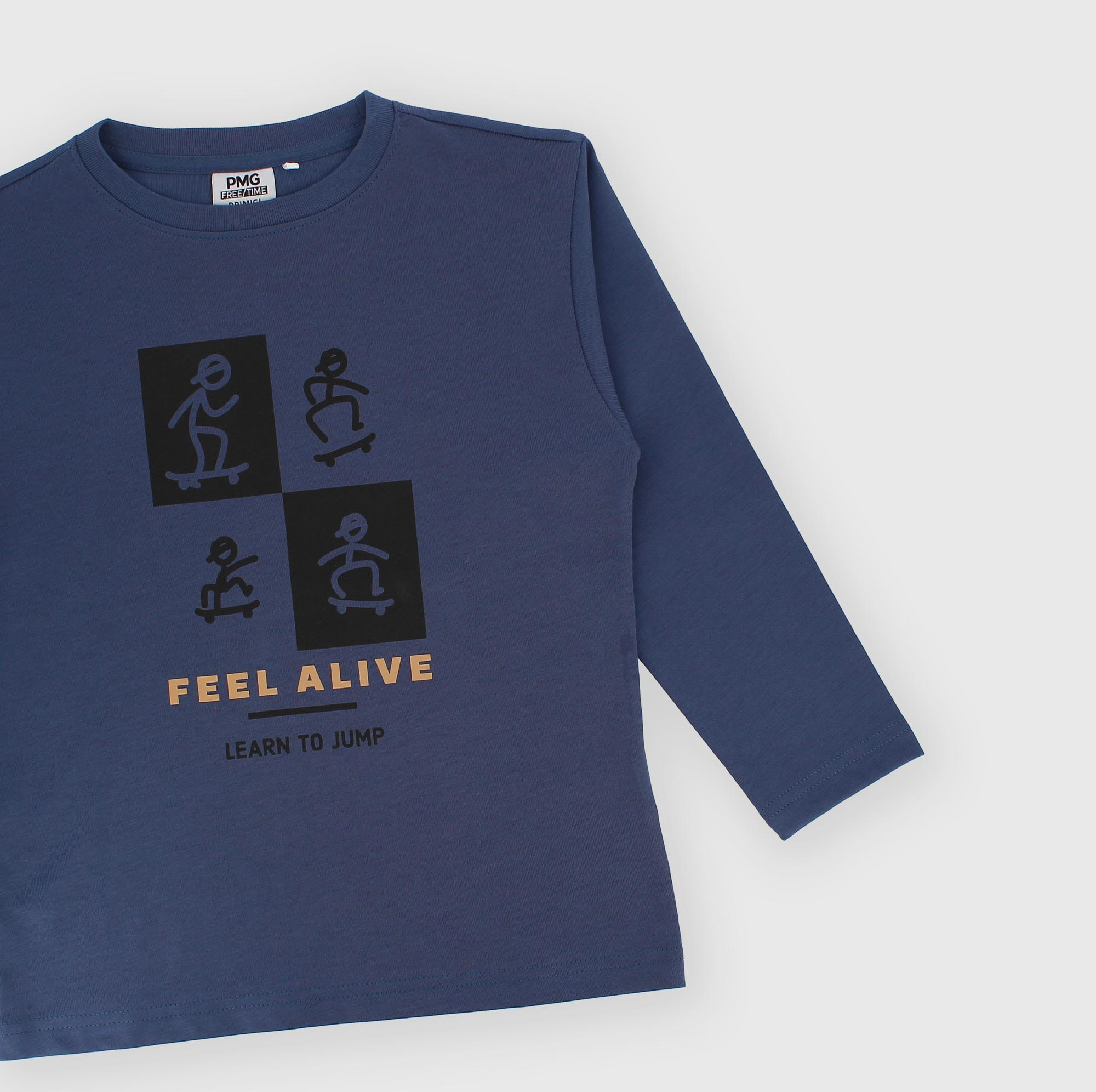 T-shirt en jersey, col rond, manches longues. Imprimé avec écriture haute définition sur le devant.