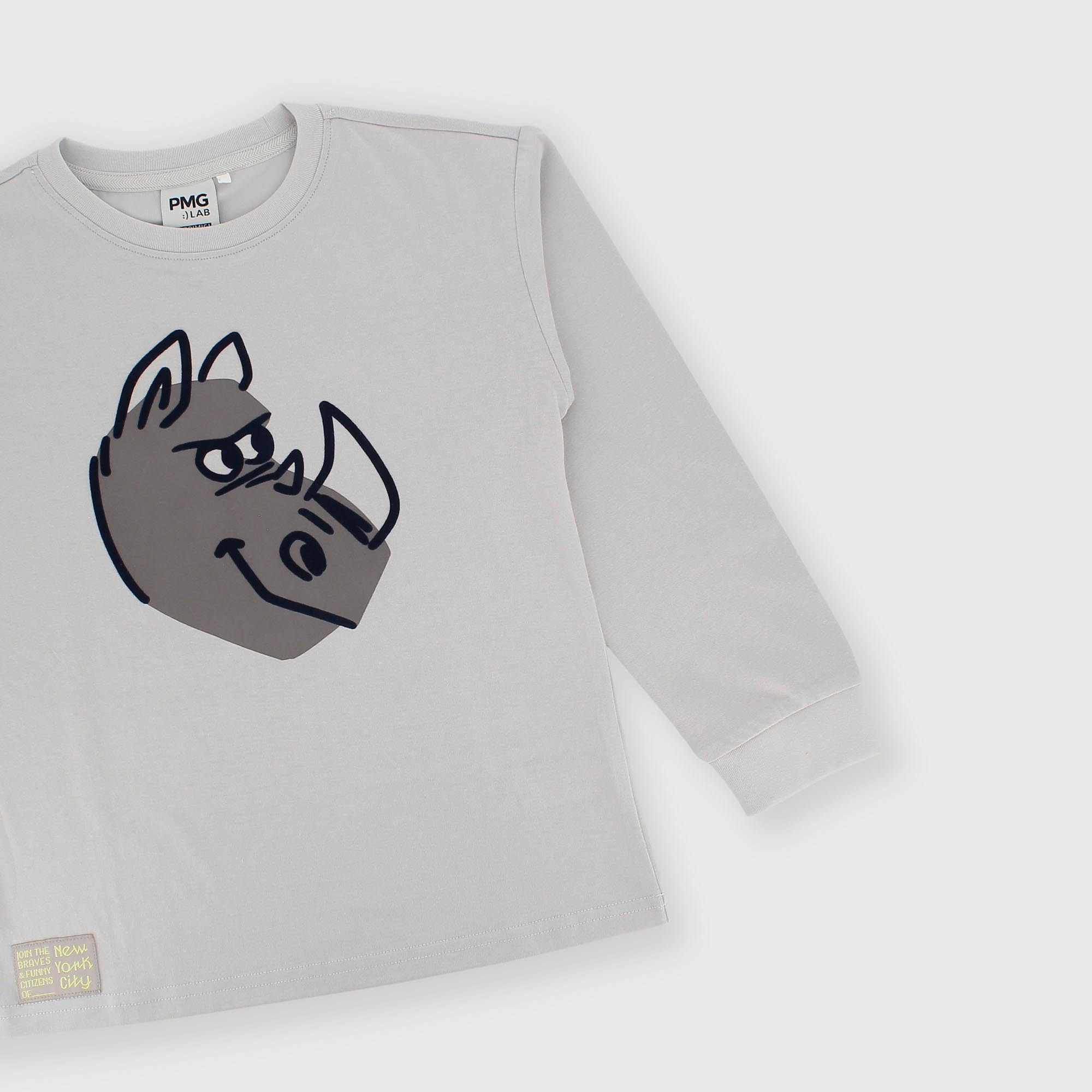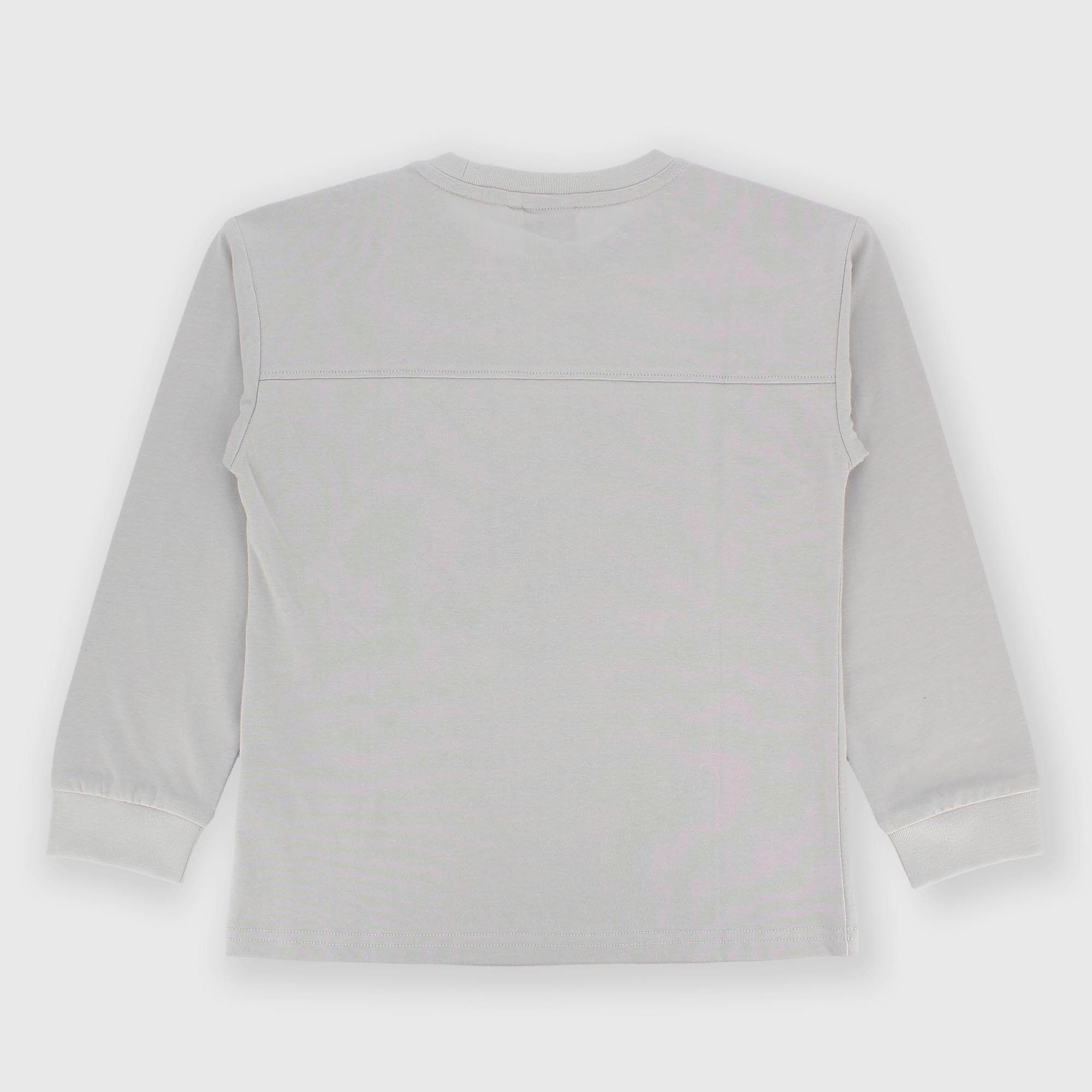 T-shirt en jersey, col rond, manches longues. Imprimé floqué et étiquette appliquée sur le devant. Col et poignets côtelés.