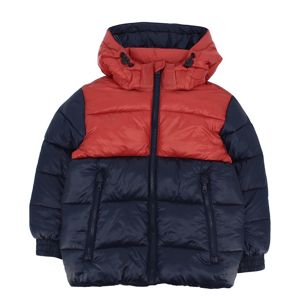 Giubbino in nylon con cappuccio staccabile, a maniche lunghe. Chiusura con zip frontale. Tasche anteriori.