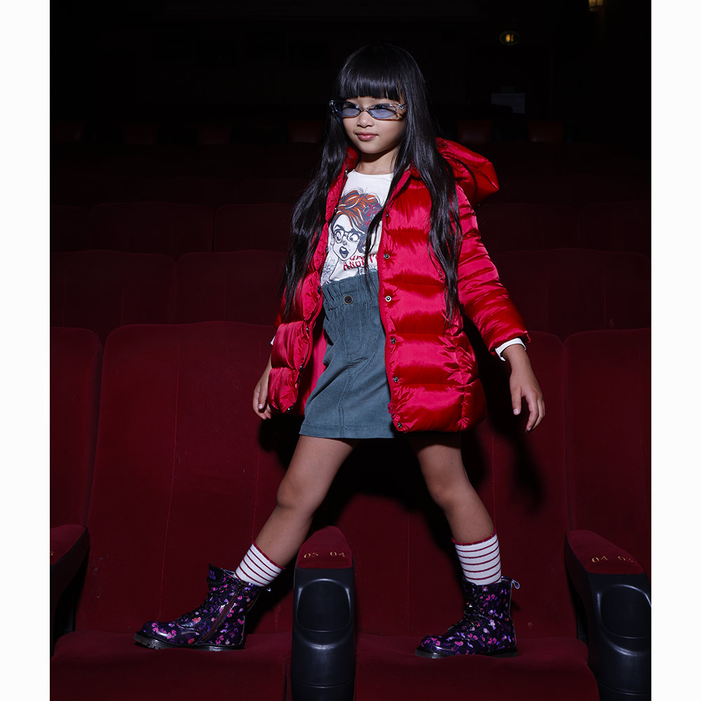 Giubbino in nylon con cappuccio, a maniche lunghe. Chiusura con zip e bottoni automatici. Tasche anteriori invisibili.
