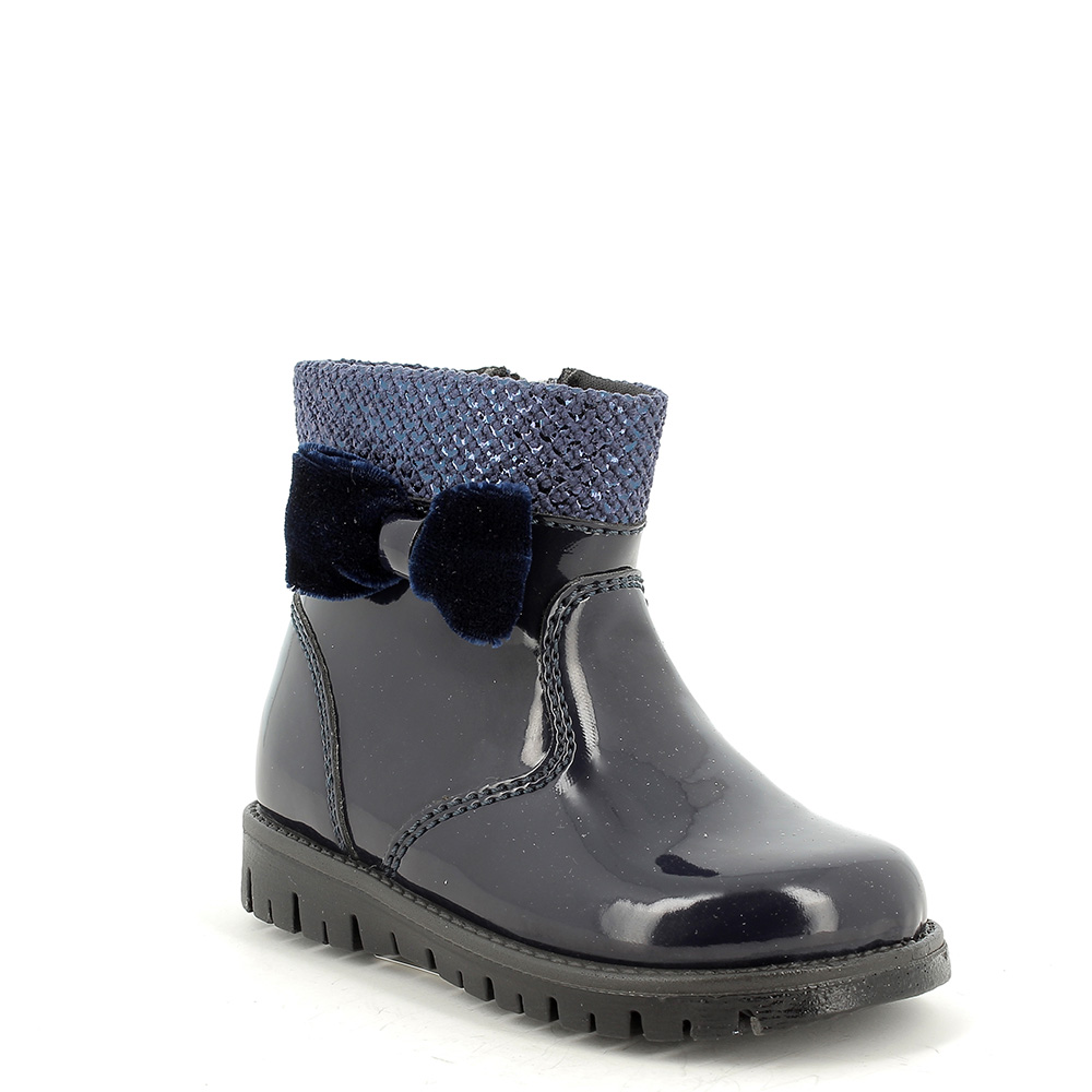 STIVALETTO BON TON PRIMI PASSI IN VERNICE BLU CON APPLICAZIONE DI FIOCCO LATERALE IN VELLUTO