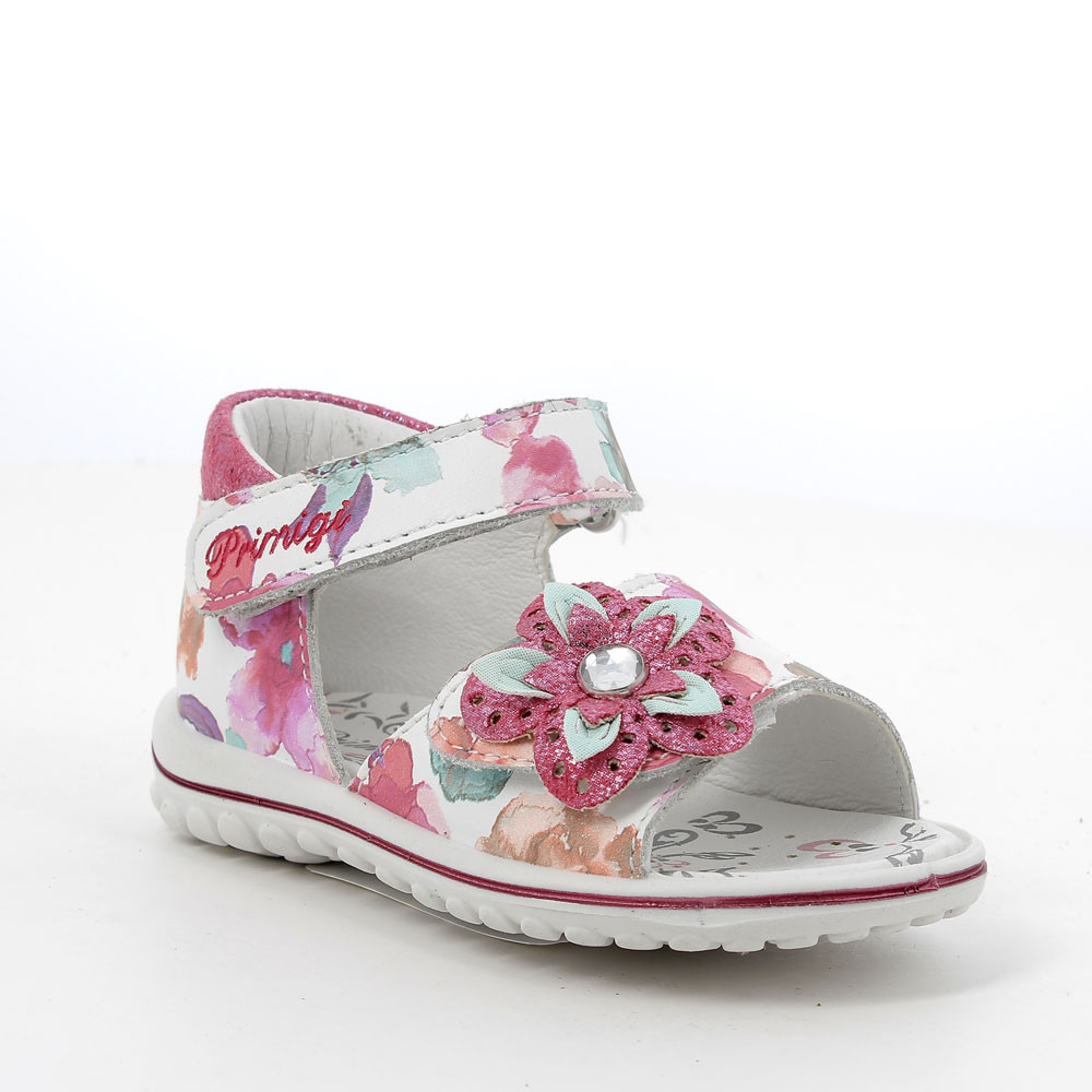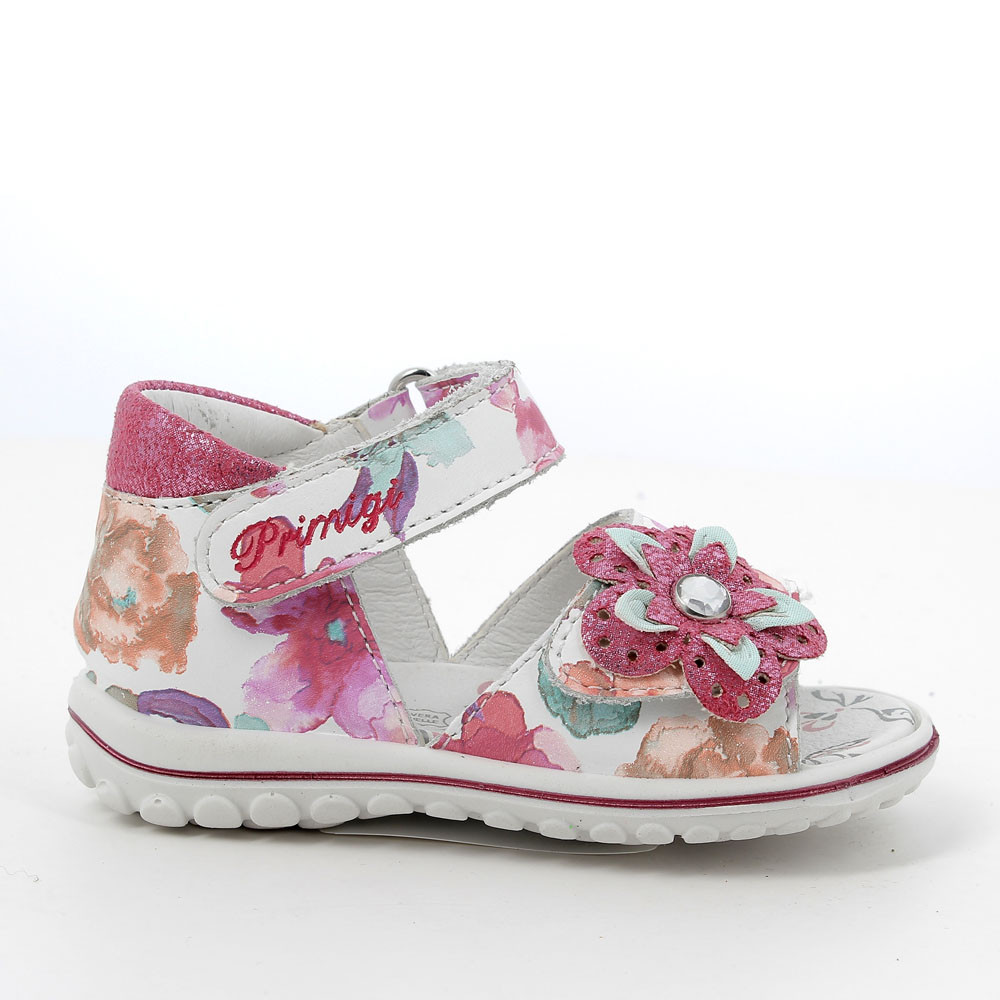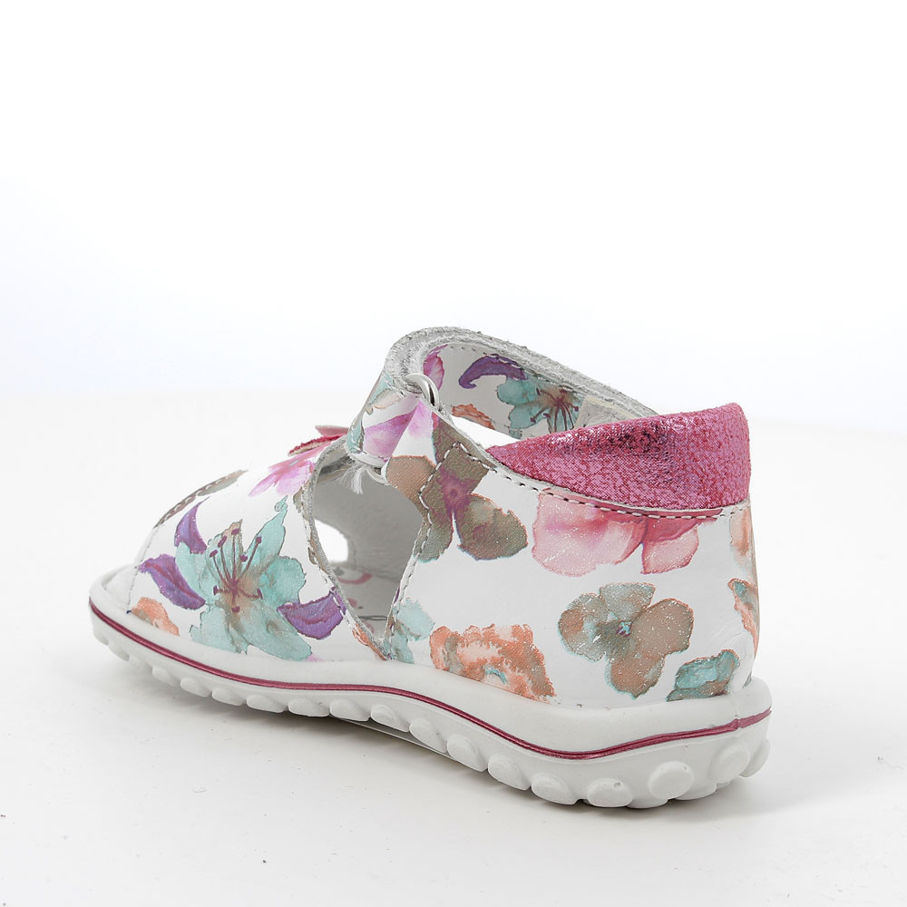 Sandalo in pelle da bambina bianco multicolor-fuxia