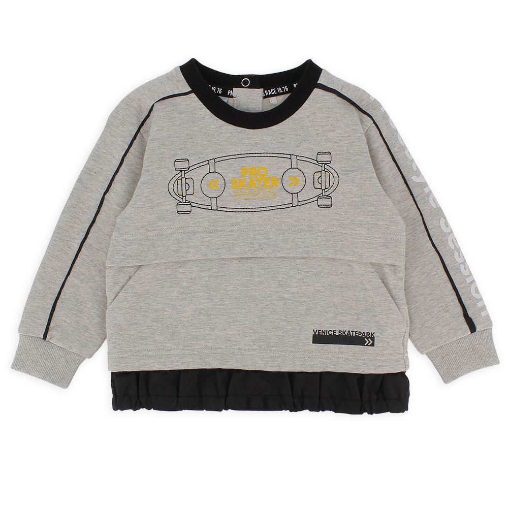 Felpa boxy girocollo, a maniche lunghe. Tasca a marsupio frontale e dettagli a contrasto, inserto in nylon sul fondo. Ricamo skate frontale.