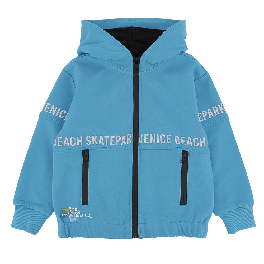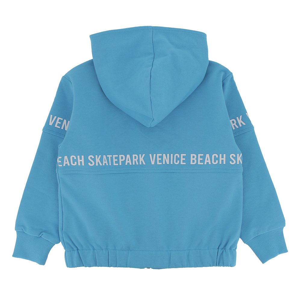 Felpa aperta con cappuccio, a maniche lunghe. Chiusura con zip frontale. Tasche anteriori con zip a contrasto. Stampe a tema Skate. Cappuccio foderato con tessuto a contrasto.
