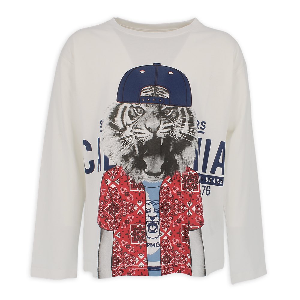 T-shirt in jersey modello oversize, girocollo, a maniche lunghe. Stampa frontale.