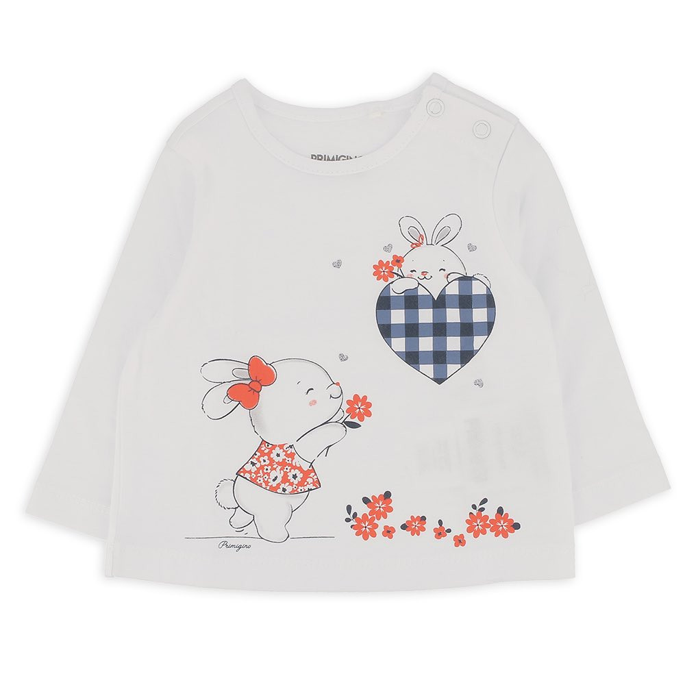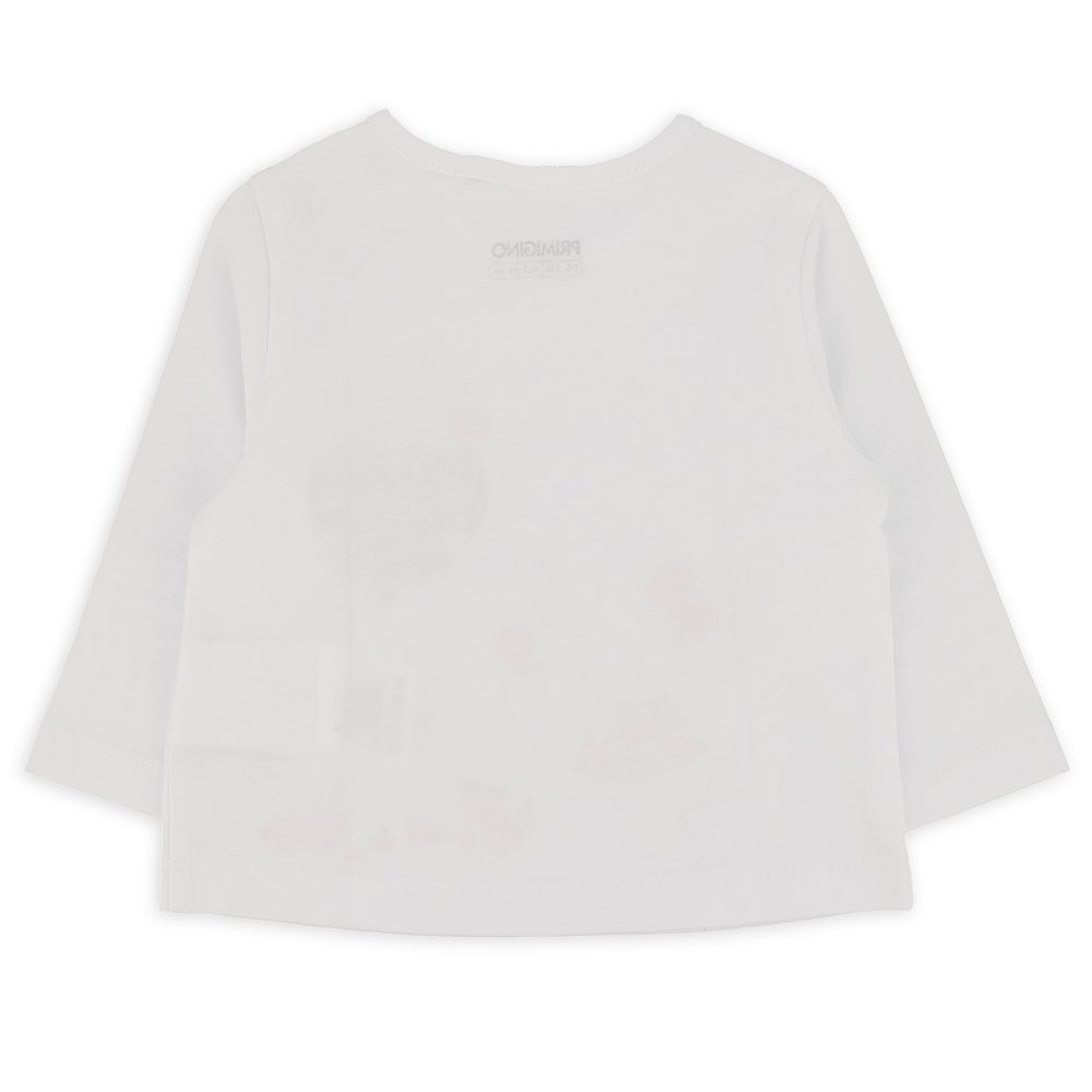 T-shirt in jersey, girocollo, a maniche lunghe. Chiusura con bottoni automatici sulla spalla. Stampa frontale.