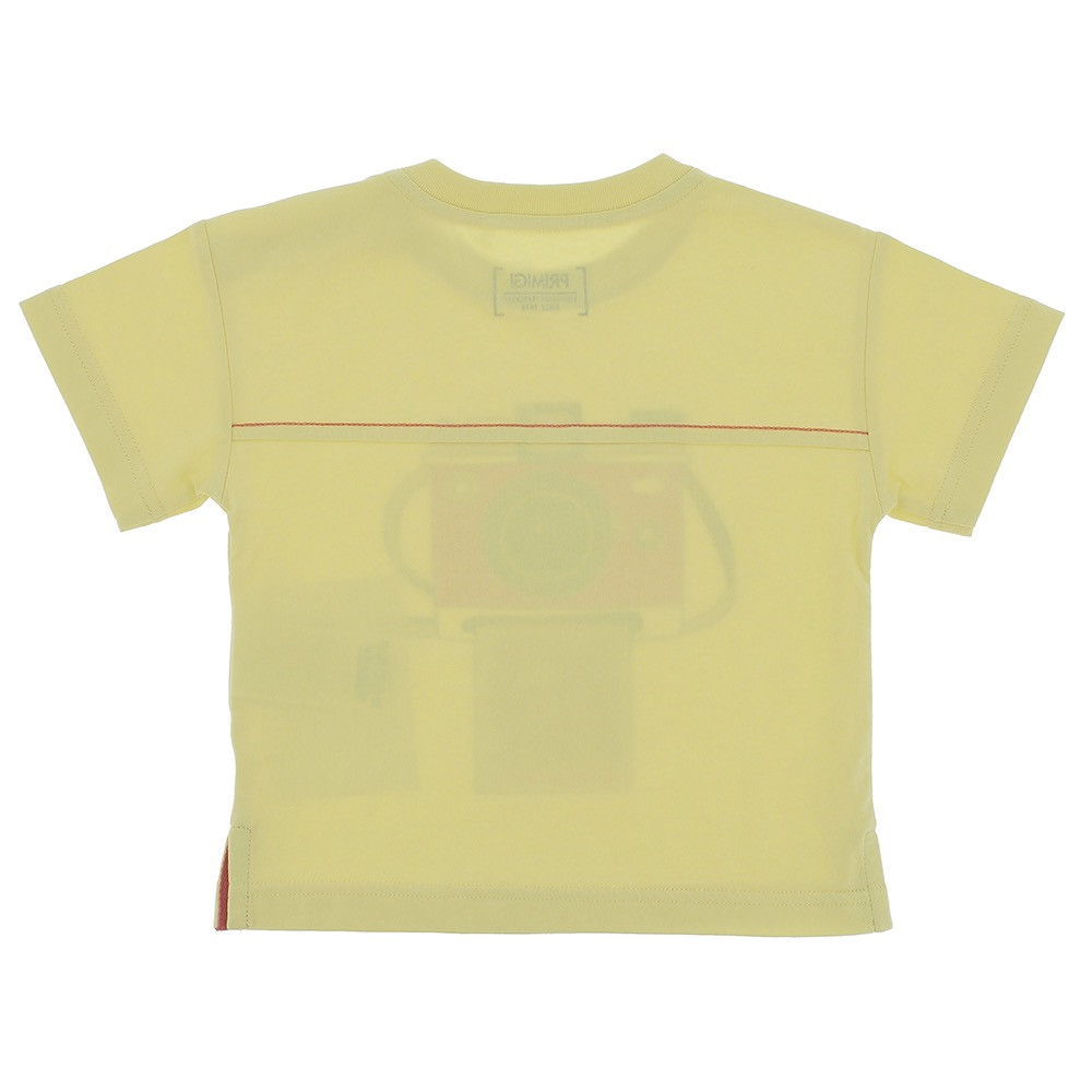 T-shirt oversize, girocollo a maniche corte, in jersey. Chiusura con bottoni automatici sulla spalla. Stampa frontale.