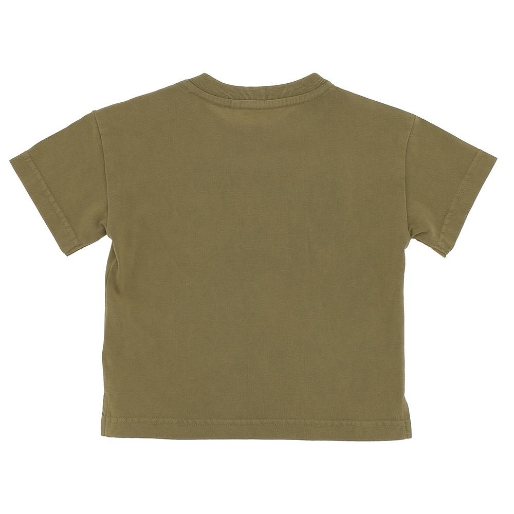 T-shirt oversize, girocollo a maniche corte, in jersey. Chiusura con bottoni automatici sulla spalla. Stampa frontale.