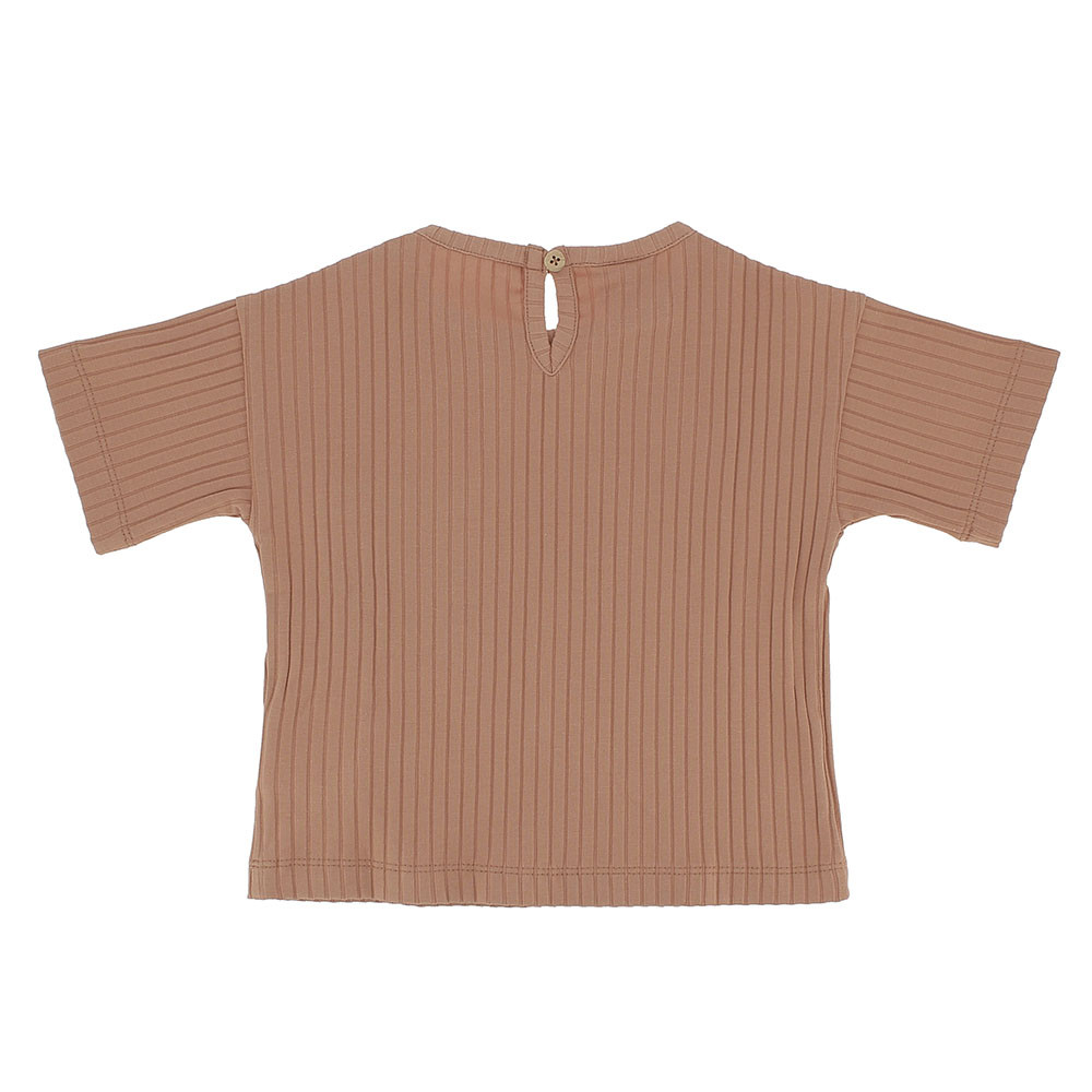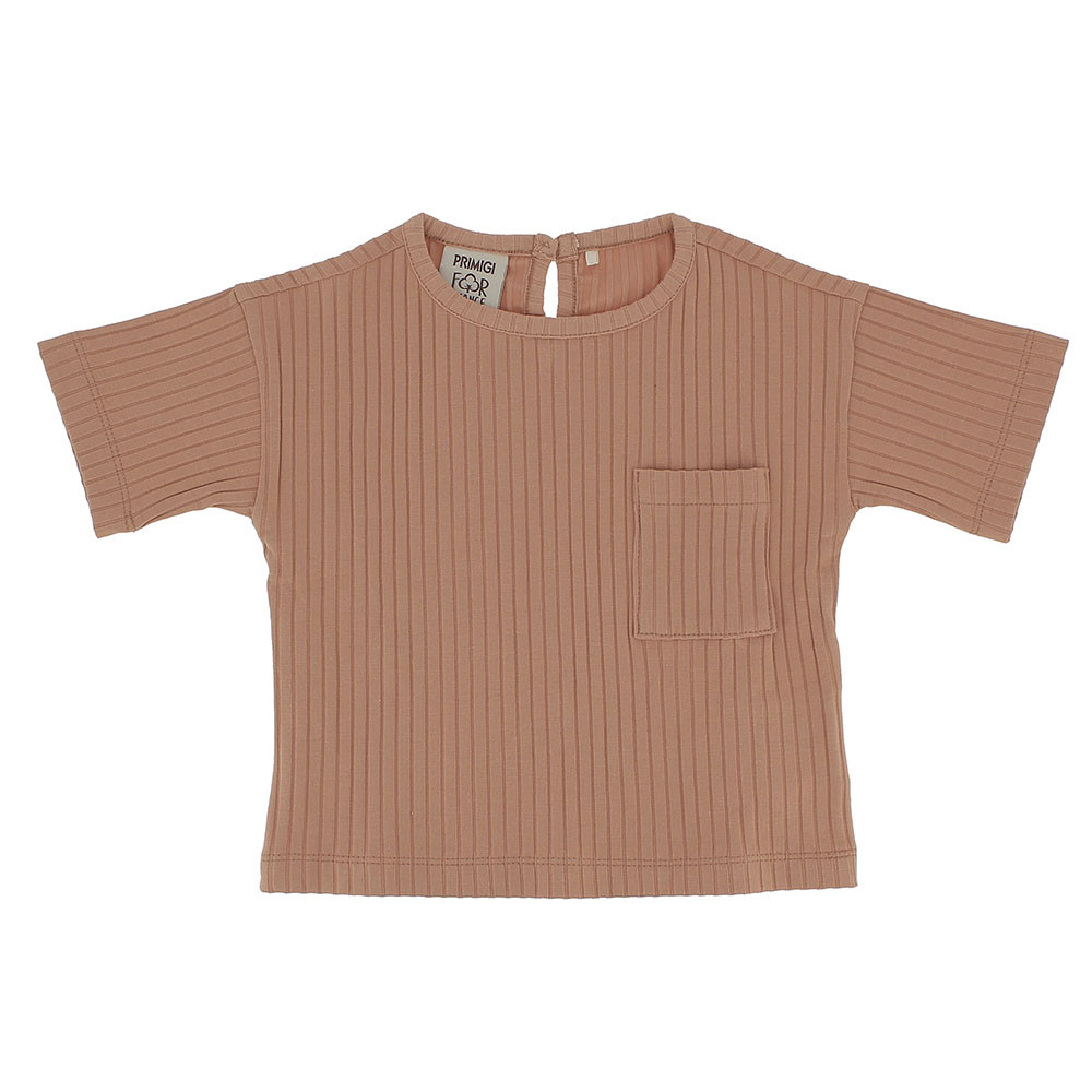 T-shirt oversize in costina, girocollo, a maniche corte. Tasca frontale. Questo capo è ecosostenibile perché realizzato prevalentemente con cotone organico.