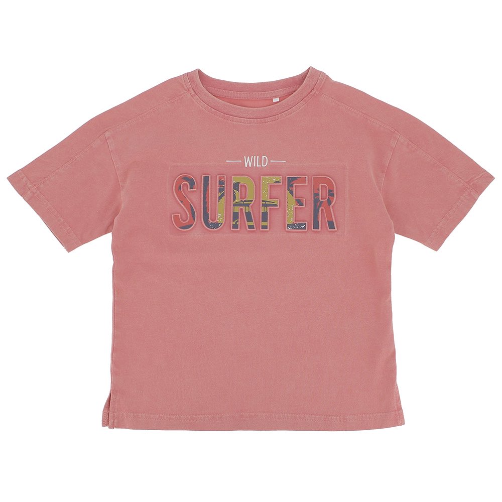 T-shirt in jersey lavato, girocollo, a manica corta. Stampa frontale con scritta 3D. Fondo con spacchetti laterali.