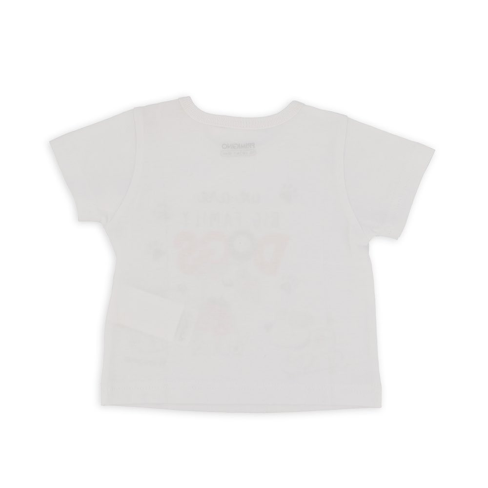 T-shirt in jersey, girocollo, a maniche corte. Chiusura con bottoni automatici sulla spalla. Stampa frontale.