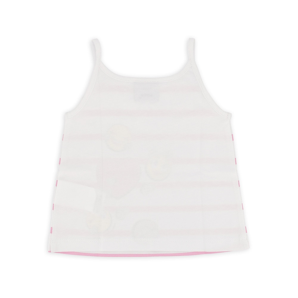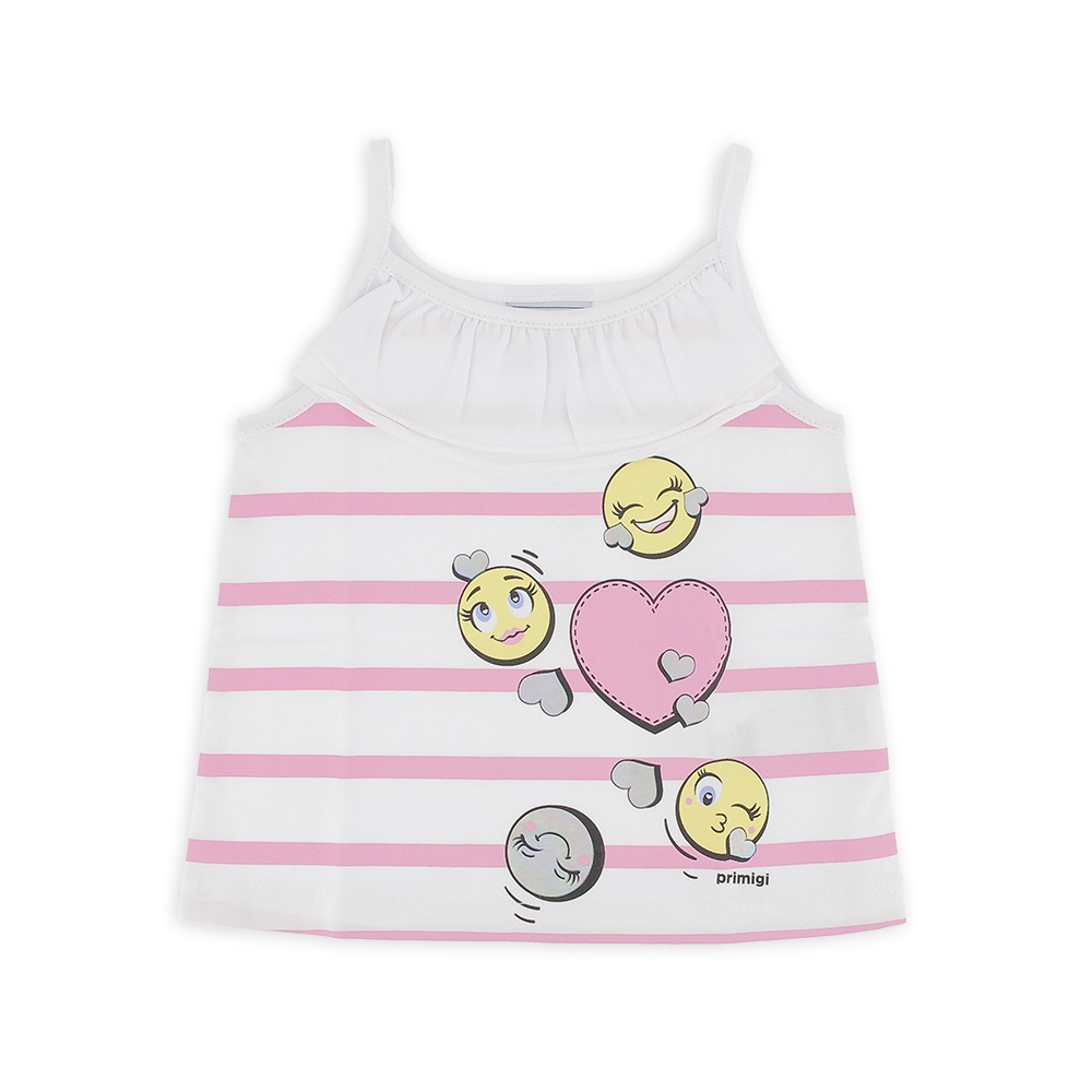 Canotta in jersey con bretelline sottili. Scollo con volants. Motivo a righe e stampa frontale.