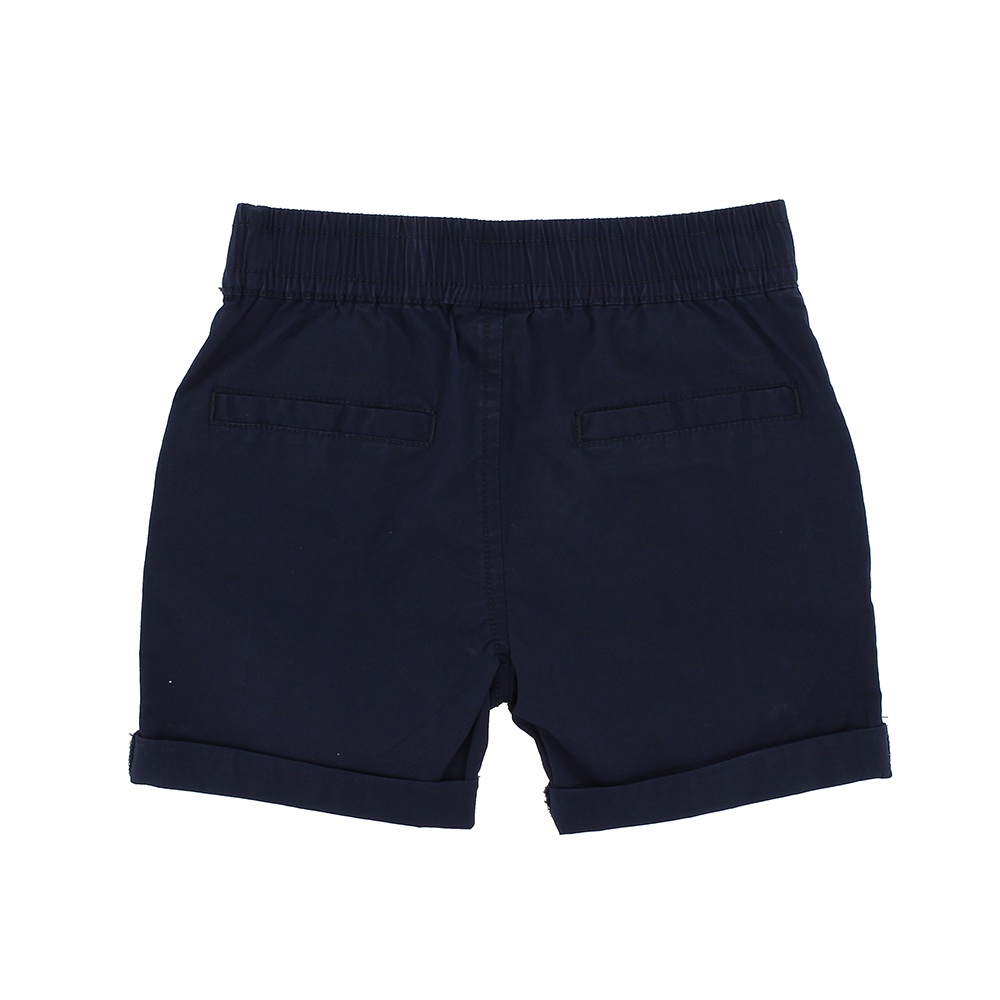 Bermuda in popeline comfort fit, vita elasticizzata con lacci frontali. Tasche alla francese e tasche posteriori a listino.