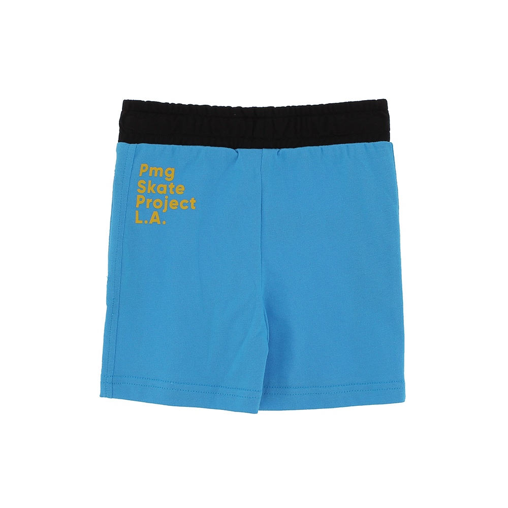 Bermuda in jersey con vita elasticizzata e lacci frontali. Tasche laterali con zip. Stampe con scritte a contrasto.